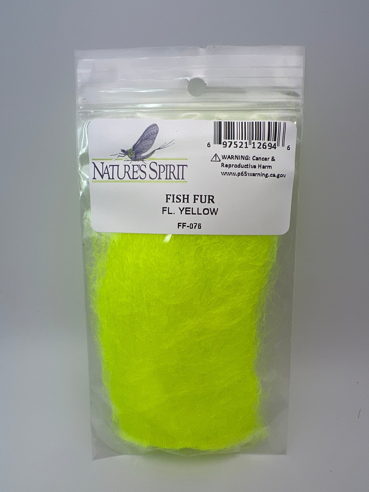 Pure 100% Trilobal fiber averaging 5" in length. This amazingly this and shiny fiber is a perfect materials for streamers of all kinds. From small Thin baitfish, stacking it for streamer heads, or ever twisting in down for a body wrap, fish fur fits all your needs.