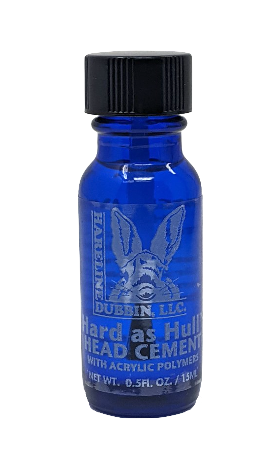 Super tough head cement. Finish is very hard and durable. Hard as Hull applicator applies cement evenly and accurately. Seals all fly tying threads and flosses. Also a great top coat for UV cure resins. 0.5 oz bottle