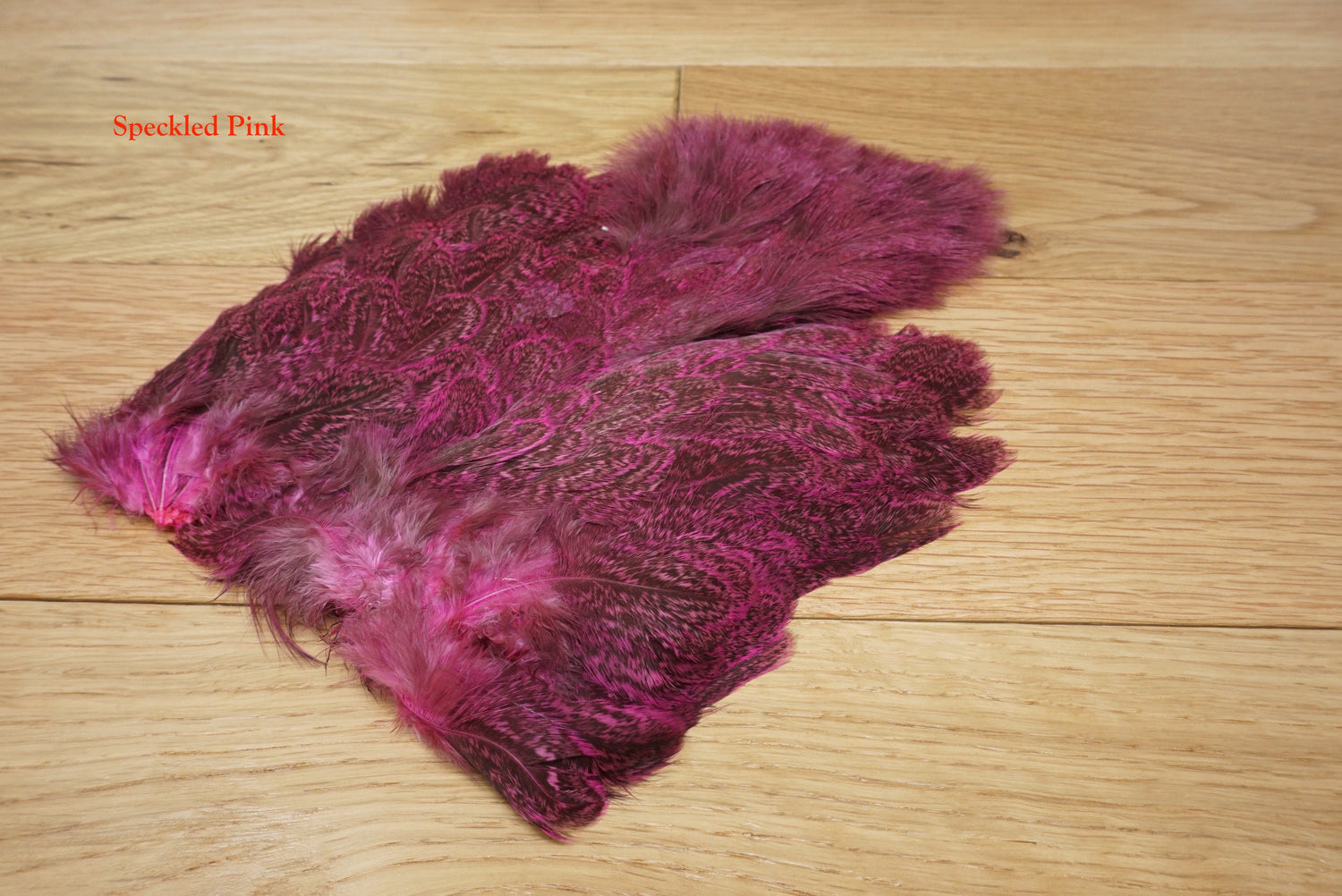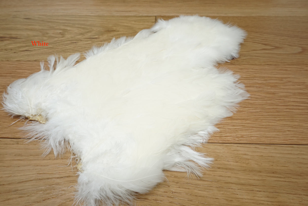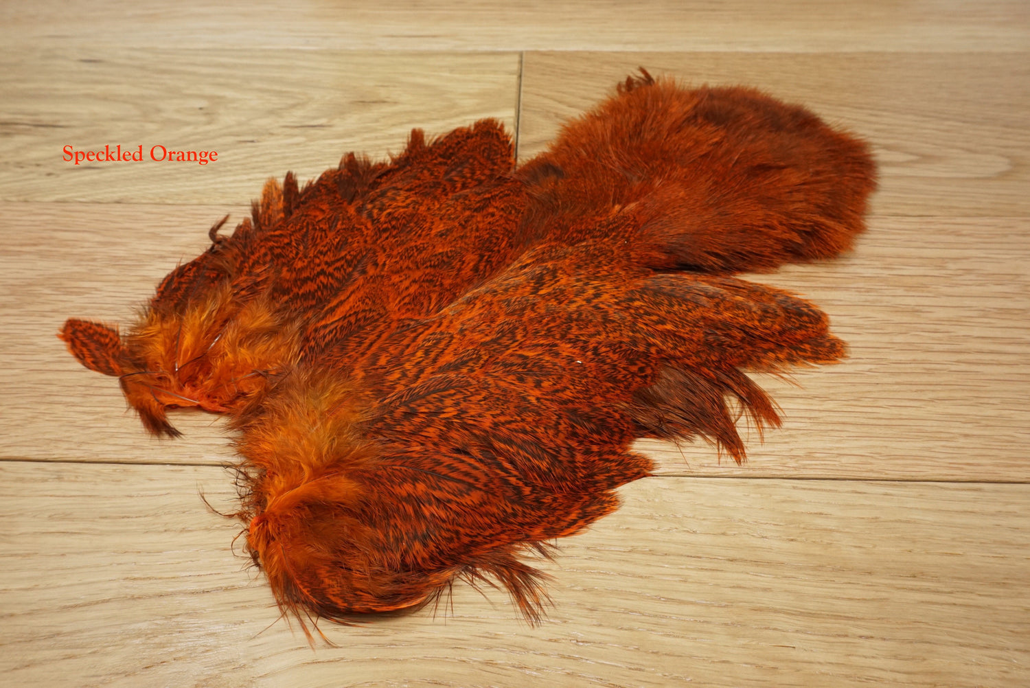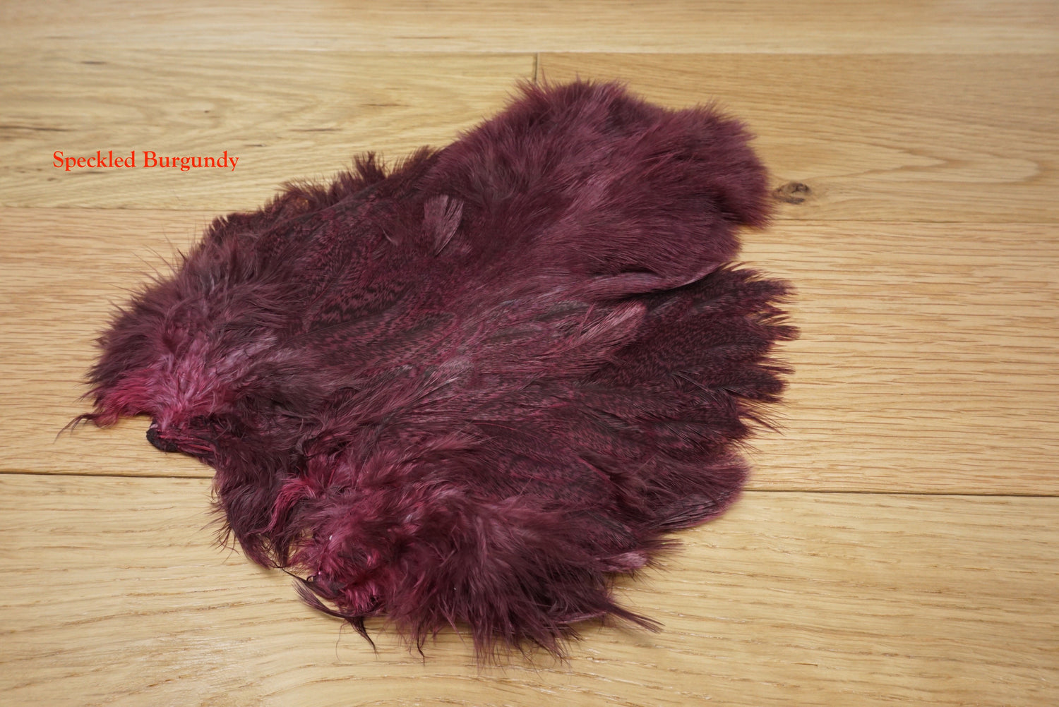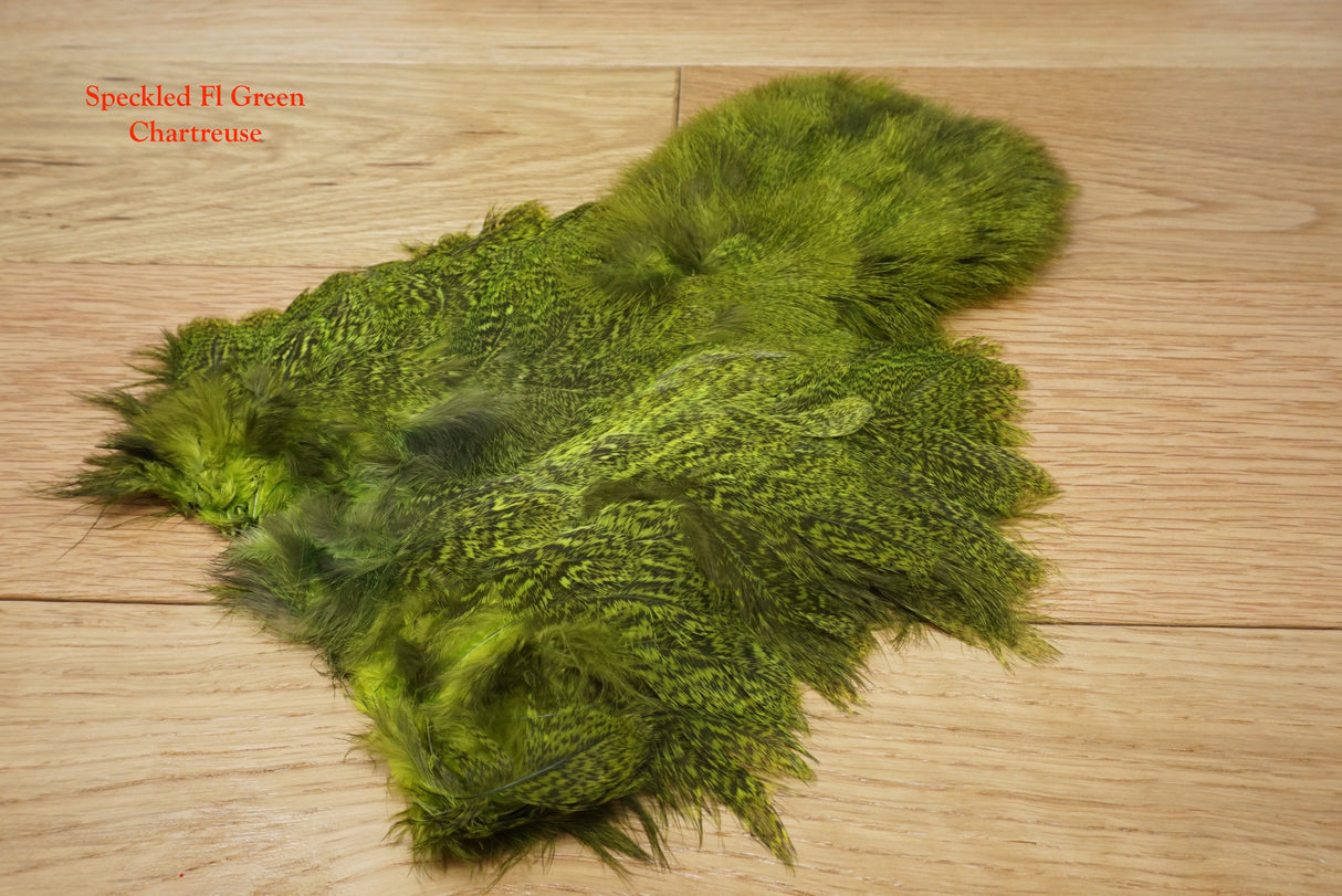 These soft hackle capes are great value for the tier that uses a lot of soft hackles and marabou feathers. The base of these capes have great soft hackles, and the tops have marabou that makes a great tail. Comes in a wide variety of colors to suit just about tying need! We really dig these for traditional steelhead patterns.