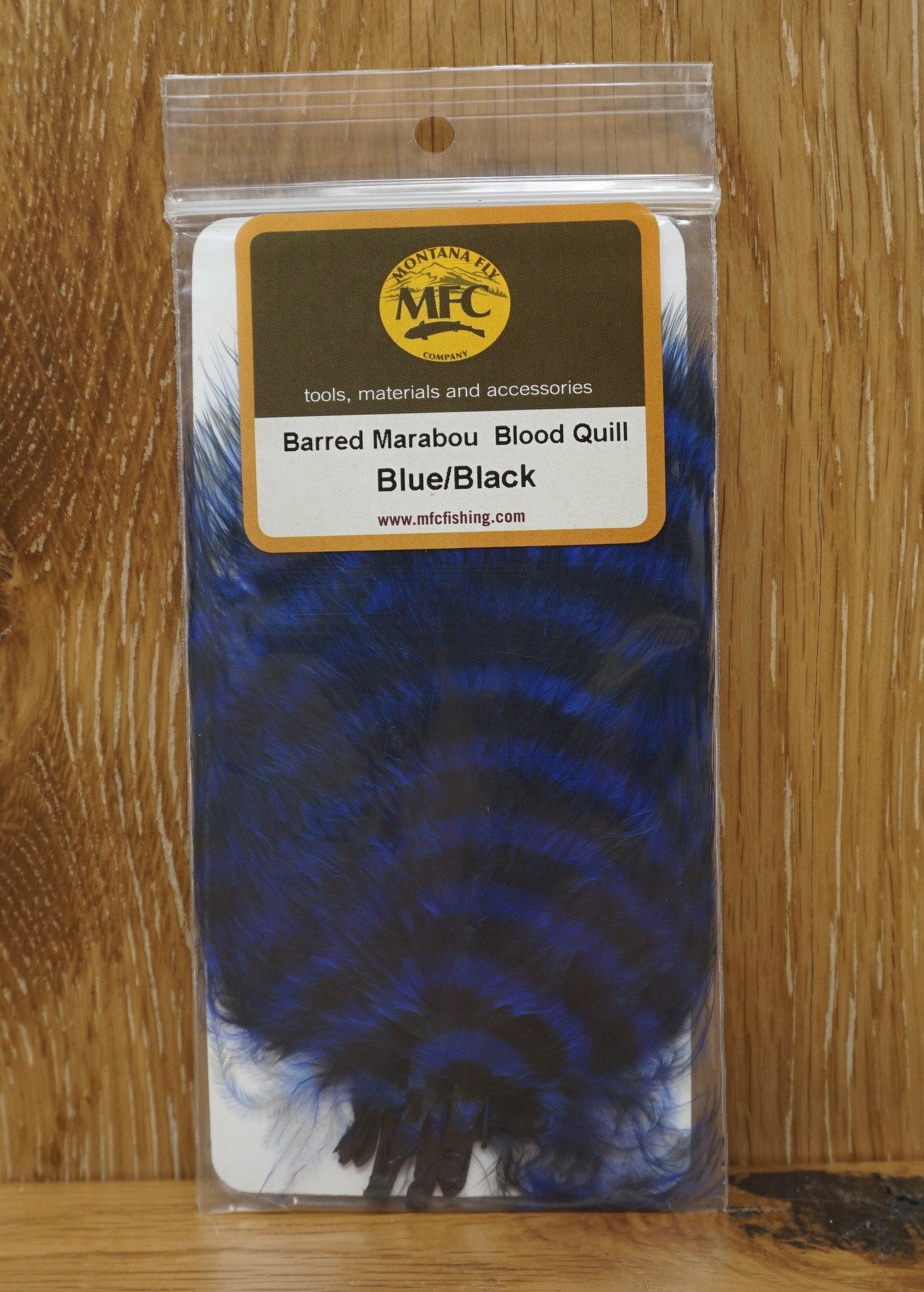 MFC Barred Marabou - Blue/Barred Black (1/8 oz) is backordered and will ship as soon as it is back in stock.