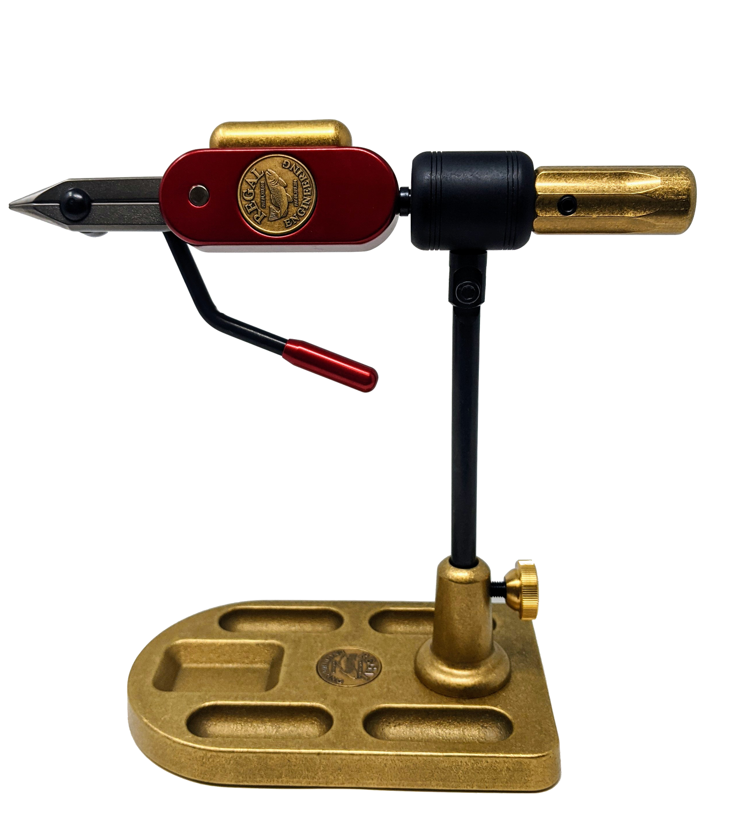 The Regal Revolution Vise is the most versatile and elegant vise ever produced. The Revolution Vise combines the ultimate hook holding power of our famous head design, and true in-line rotary function. You can rotate the vise for winding materials on the hook, or tighten the barrel and wrap materials in the traditional method. All Revolution Vises are true in line rotary revolving around a 360° axis and articulating 220° up and down.