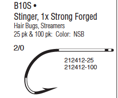 Gamakatsu B10S Stinger Hook - If you need a seriously tough hook with an equally serious hook gap, the Gamakatsu B10S is for you. Favorite Streamer hook for single and articulated streamers both, as well as a great bass and pike hook. 25 per pack.