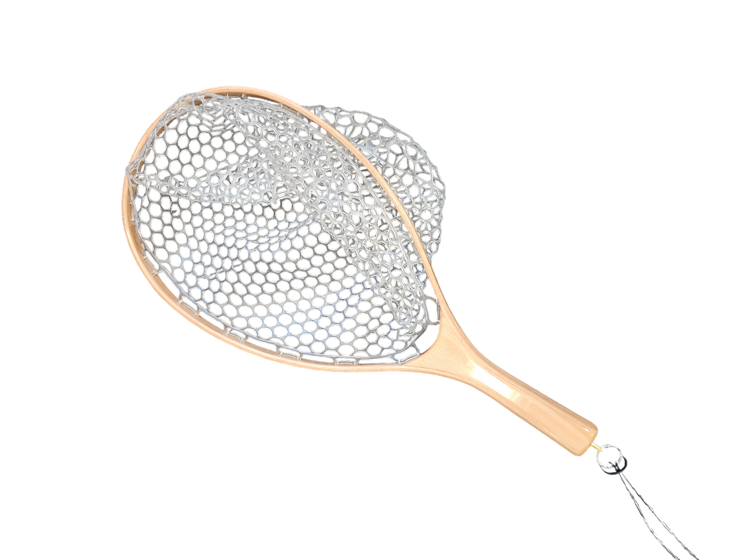 An enhanced iteration of our Catch & Release net, featuring a rubber basket, tether attachment point, and bungee. This net boast a soft durable and clear rubber bag that safeguards fish slime coatings and prevents fly snags, unlike conventional nylon netting.