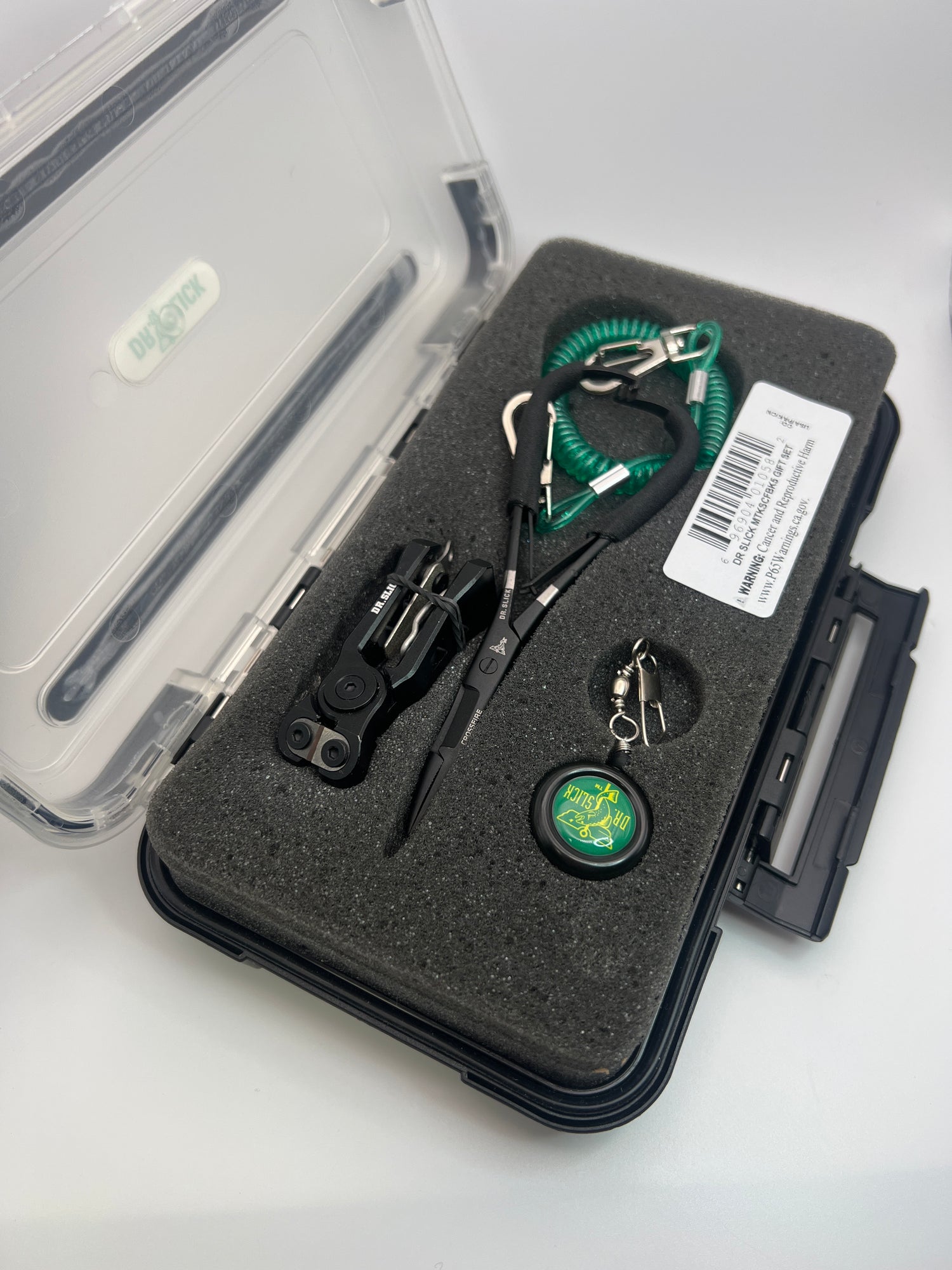 Dr. Slick Gift Set - Nipper, Reel & CMS5CFBK 5" Crossfire Mitten Scissor Clamp in Large Fly Box is backordered and will ship as soon as it is back in stock.