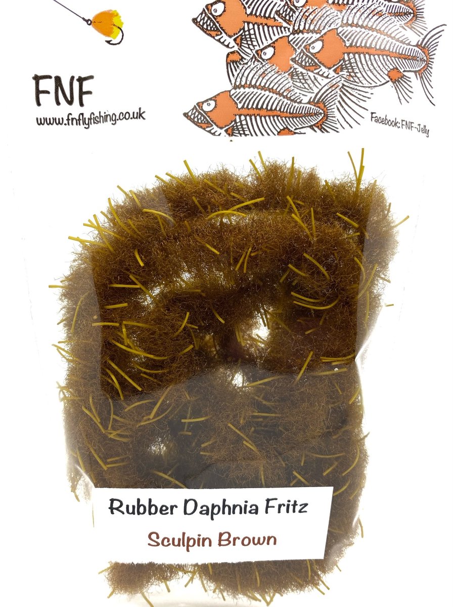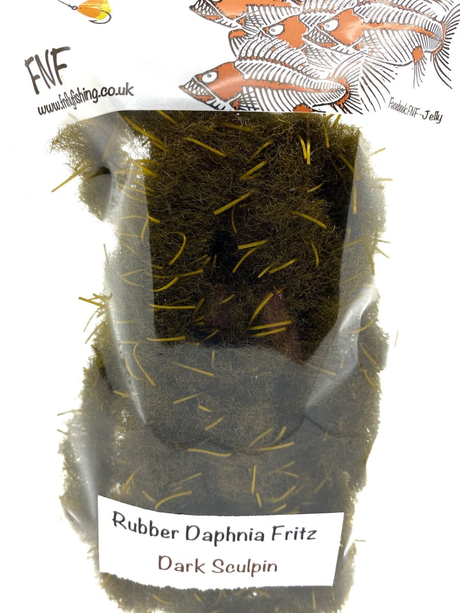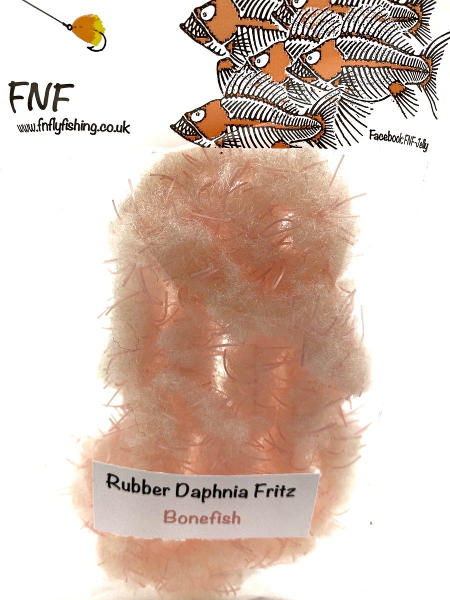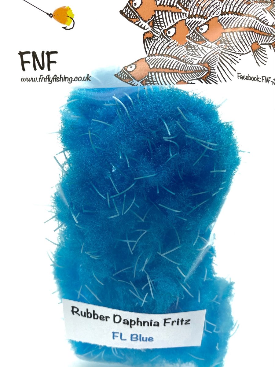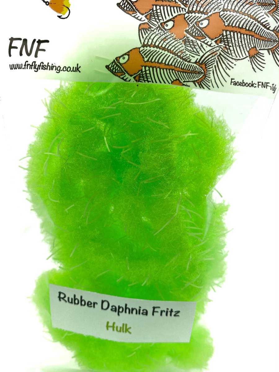 FNF Rubber Daphnia Fritz - FNF have taken our already popular Daphnia material and incorporated rubber filaments to give it a more buggy feel. This material is 20mm so will require wide gape hooks or trimmed underneath so as not to mask hook points. Fulling Mill short shank size 8 or larger is generally required. The fiber is translucent and allows other materials and beads to bleed through. Daphnia and Rubber Daphnia are both excellent materials for sculpting shapes like frogs or fry patterns. This material makes fantastic egg patterns with the rubber helping keep the egg profile and add a little extra appeal through the soft rubber. Use some Velcro to tease out the fibers for a lovely look when using egg patterns.
