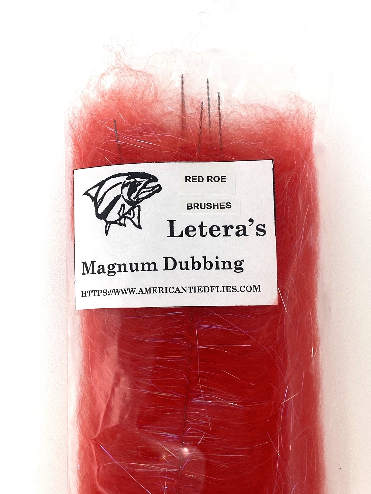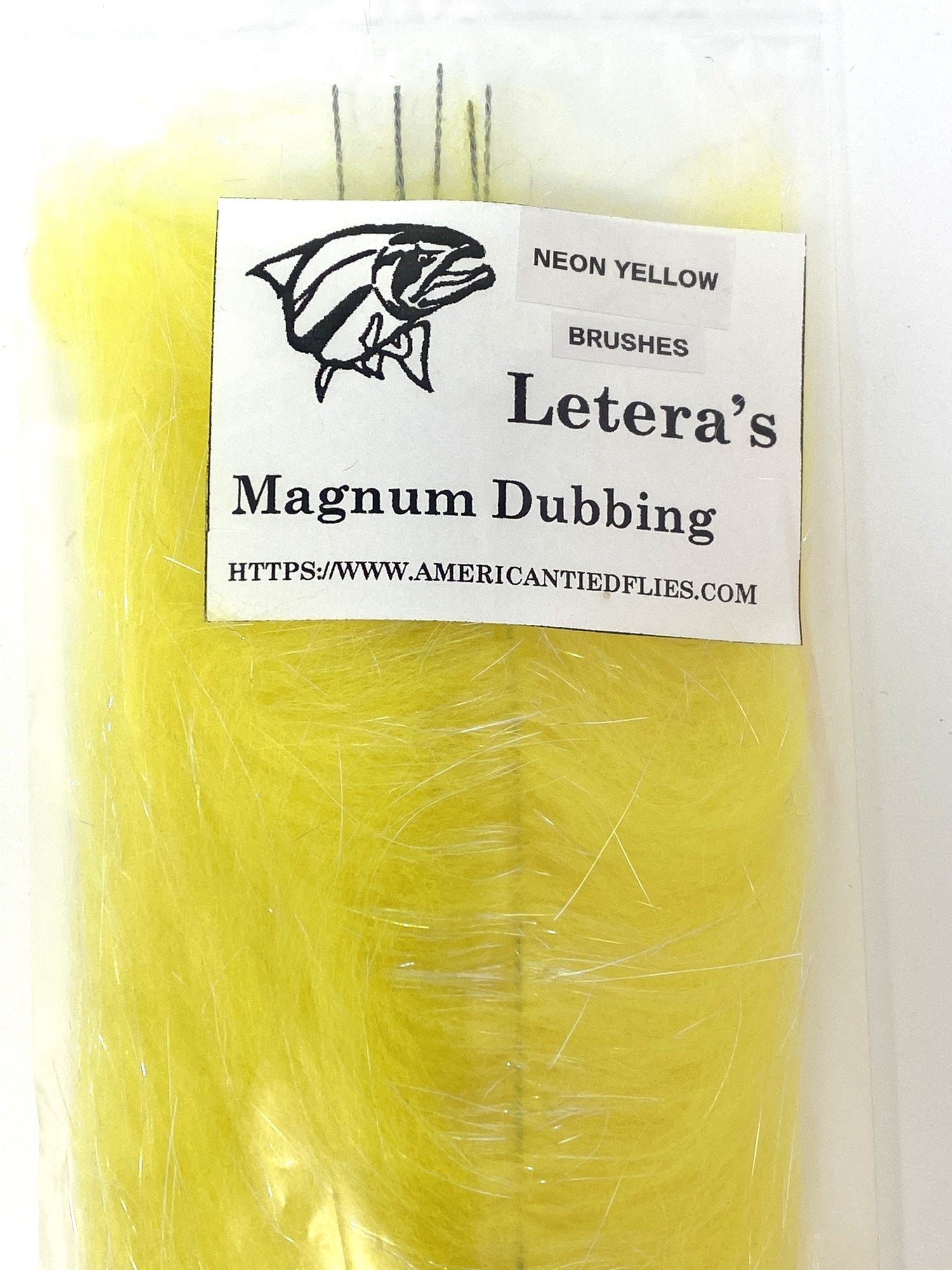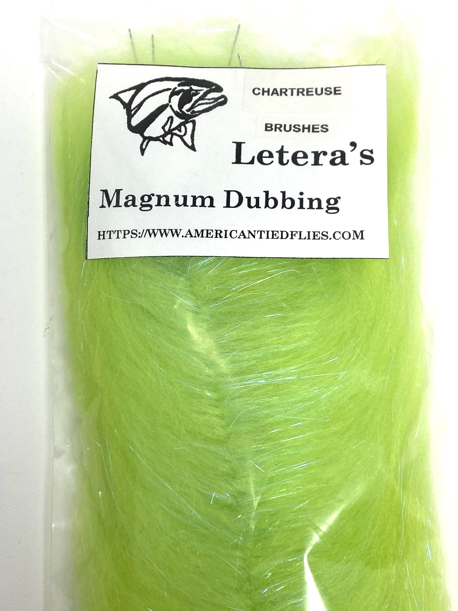 Letera's Magnum Dubbing Brushes make for an easy to tie fly that holds up great to toothy fish! Simply wrap and comb out for a great looking head on your pike, musky, and other predator patterns. Holds eyes great as well! Roughly 4" wide, with 6 14" Brushes per back.