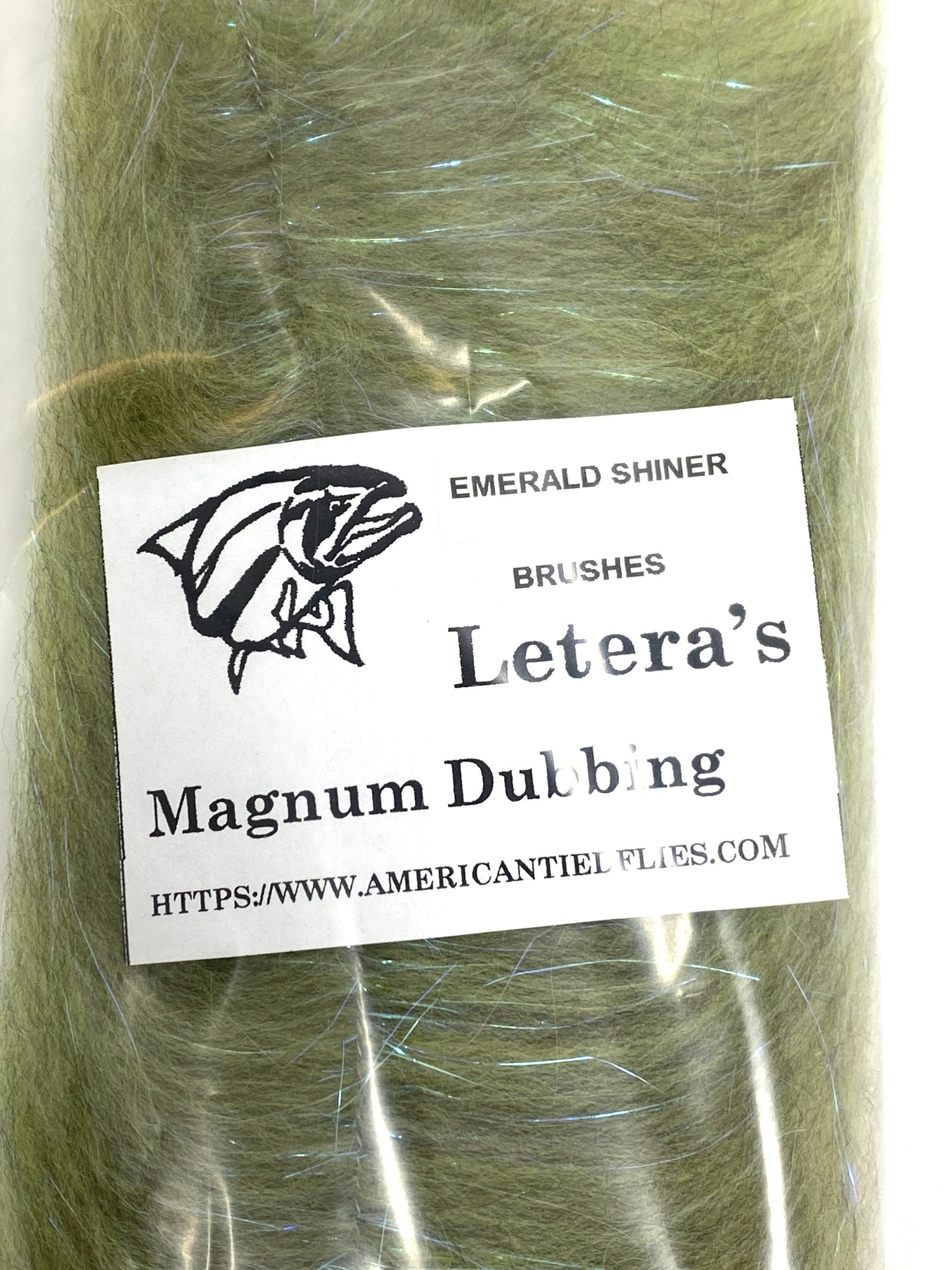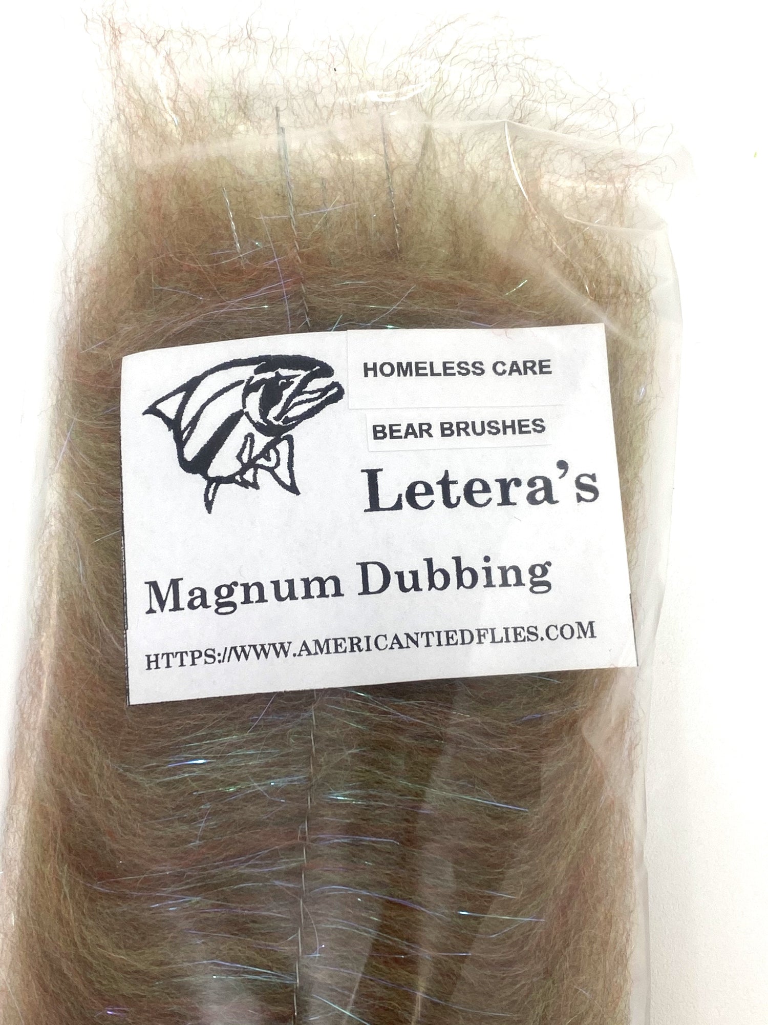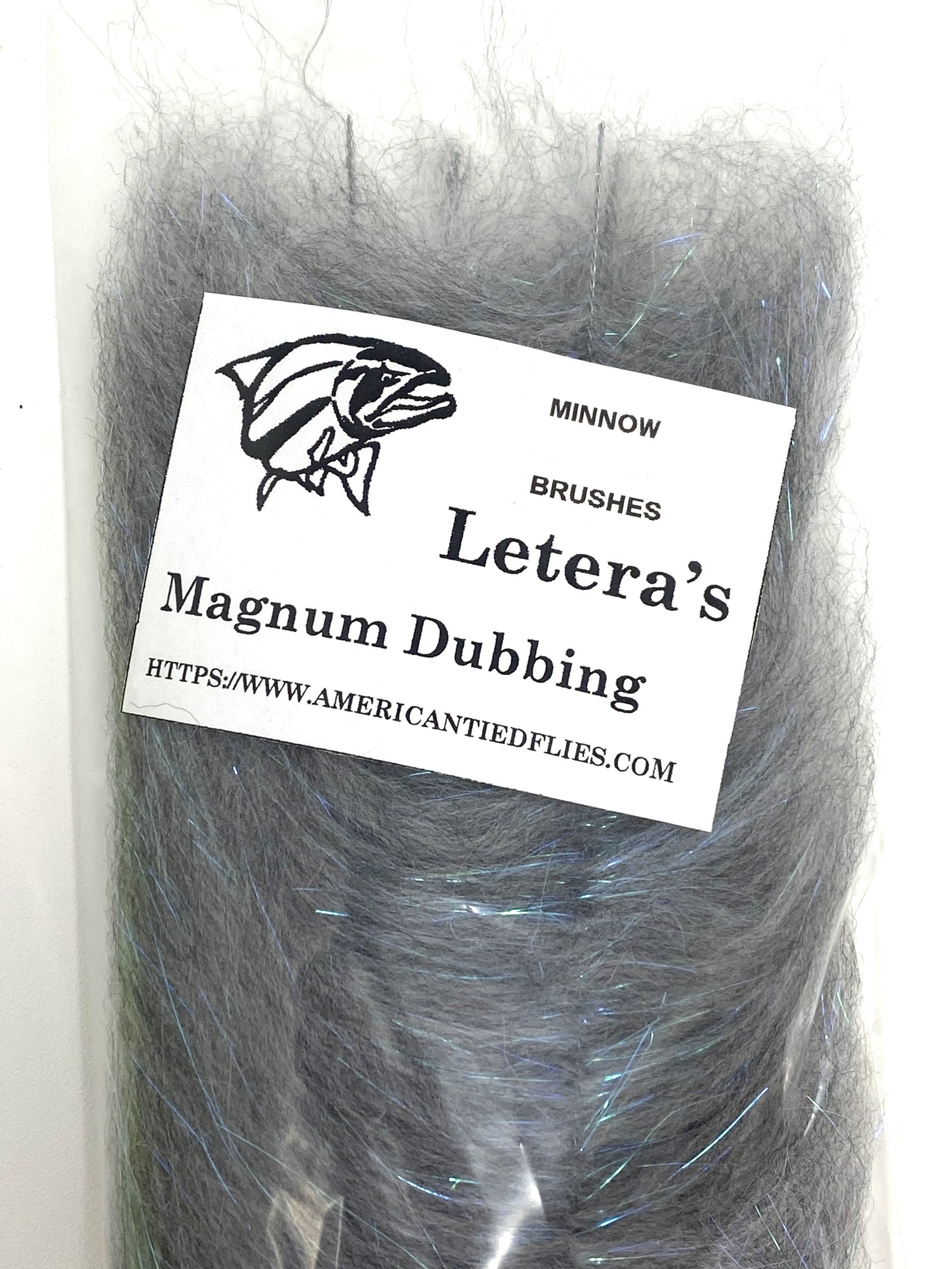 Letera's Magnum Dubbing Brushes make for an easy to tie fly that holds up great to toothy fish! Simply wrap and comb out for a great looking head on your pike, musky, and other predator patterns. Holds eyes great as well! Roughly 4" wide, with 6 14" Brushes per back.
