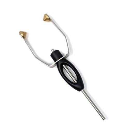 The powder coated ergonomic handle rests perfectly between the thumb and fingers, and the spring steel spool holder allows for easy tension changes by adjusting grip pressure.
