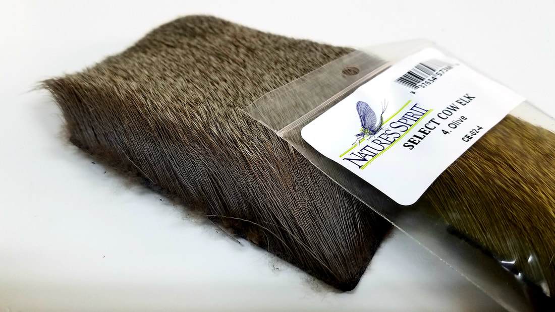 Nature's Spirit Select Cow Elk 2"x3". Nature's Spirit travels Montana and Idaho selecting hides of the finest quality for fly tying purposes. our cow elk hair is a premium product and is perhaps the best all around fly tying hair. This flank hair is grade for straightness, short to medium tips and texture that allows for compression yet maintains shape.