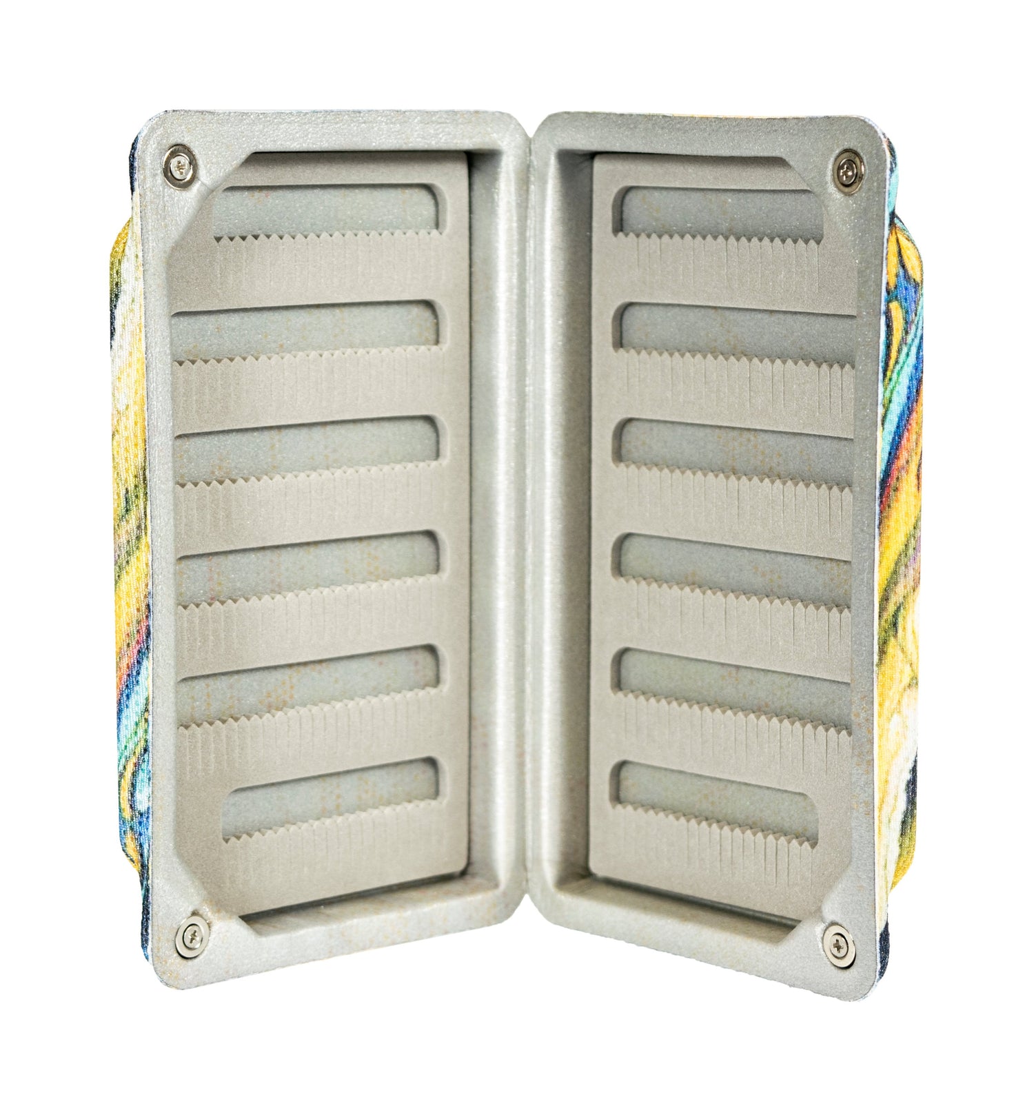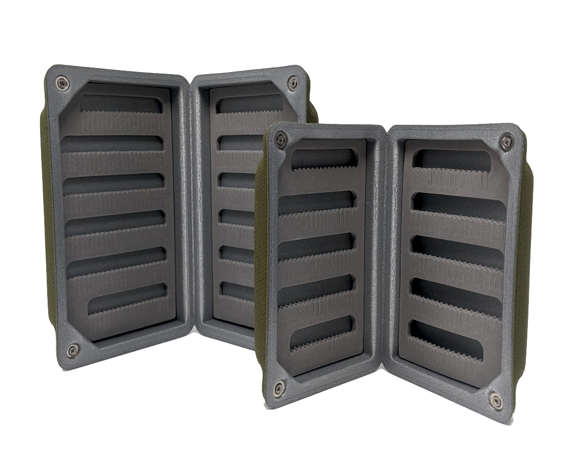 These fly boxes are made from lightweight eva foam and coated with a unique silicon dot matrix for improved traction in all conditions.  Magnetic closure allows one handed opening and closure.