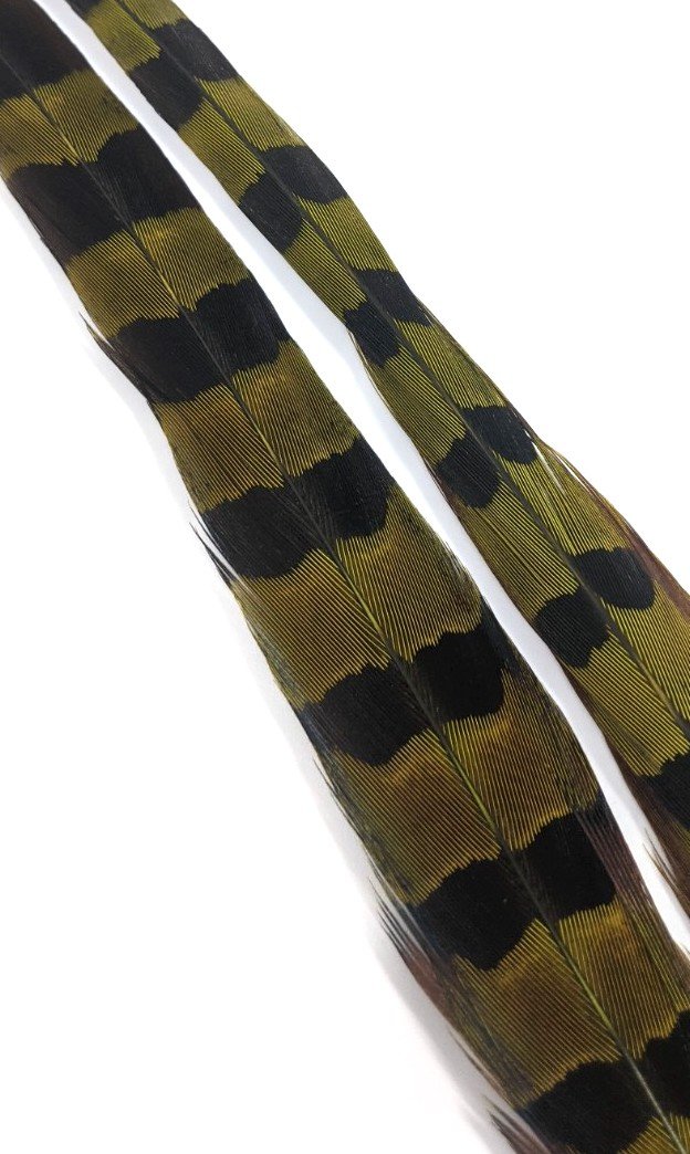 Wapsi Ringneck Pheasant Tail Feathers - 1 pair - Golden Yellow is backordered and will ship as soon as it is back in stock.