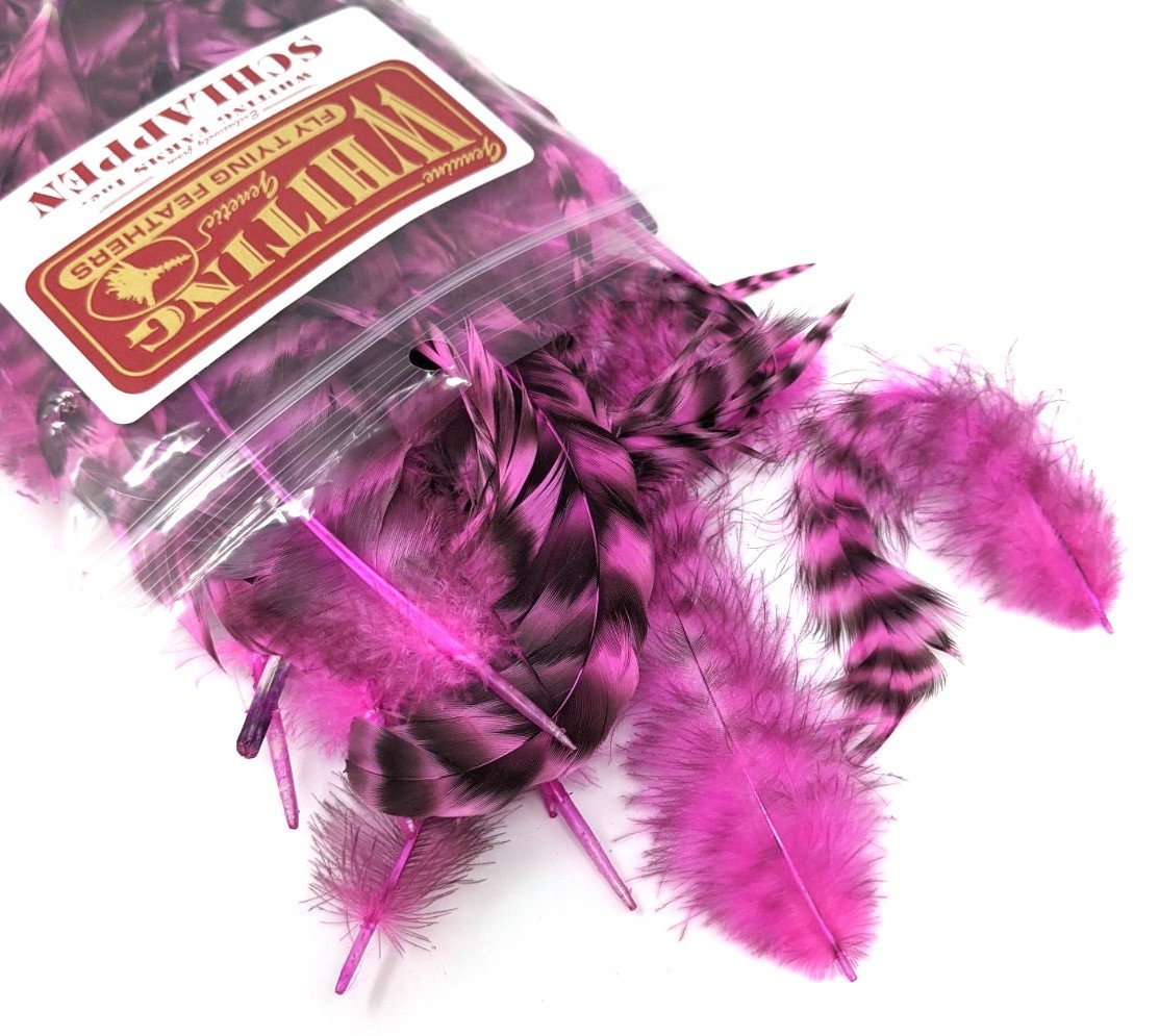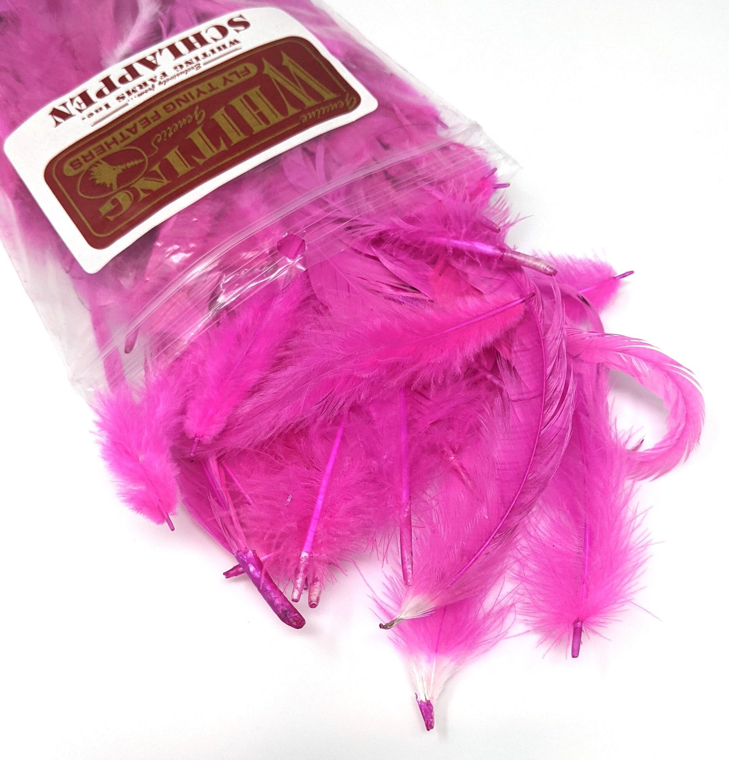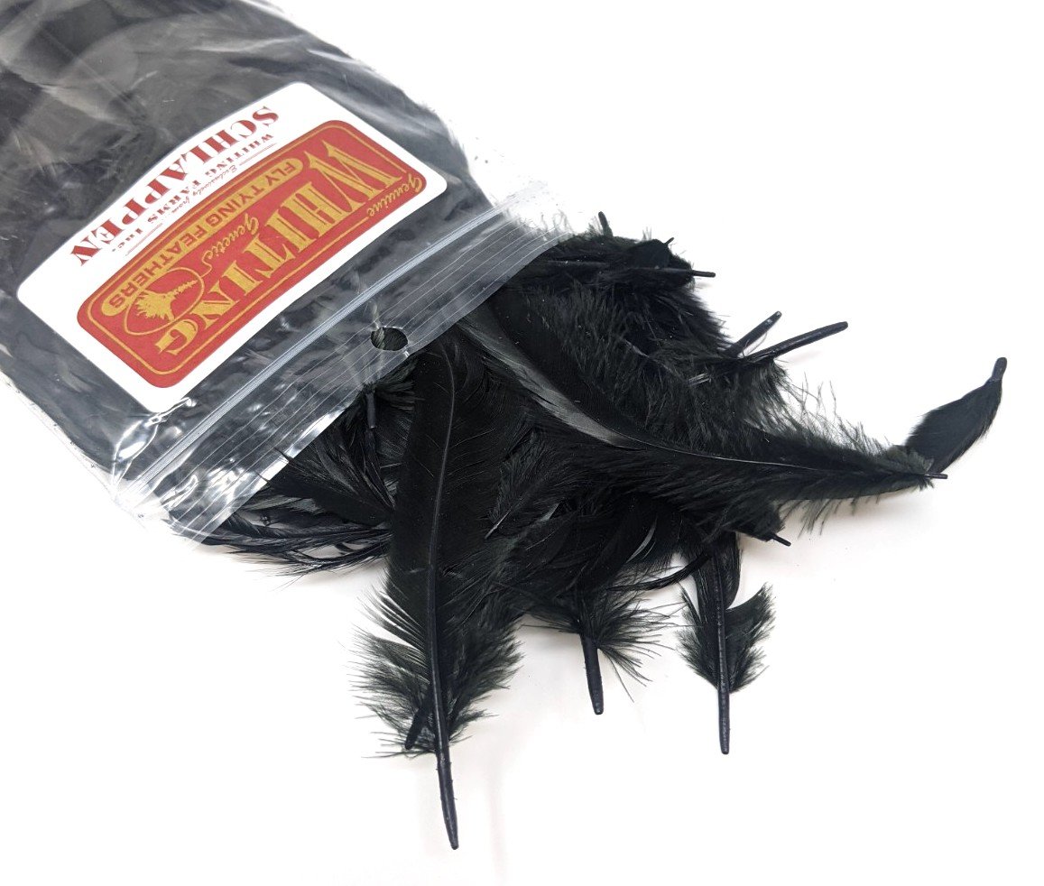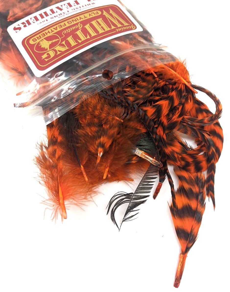 These long and webby feathers are great for tying up larger streamers for pike and musky! Great to use for long tail feathers as well as collaring hackles. Wide variety of sizes, with a ton of feathers in each bag.