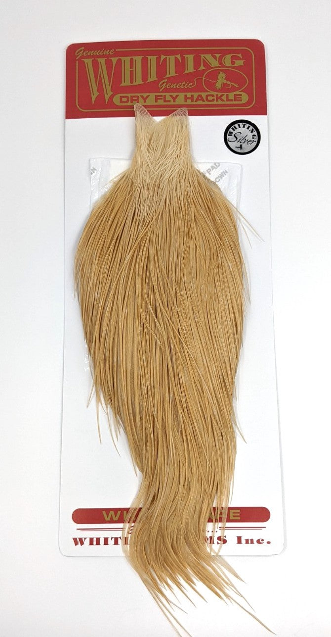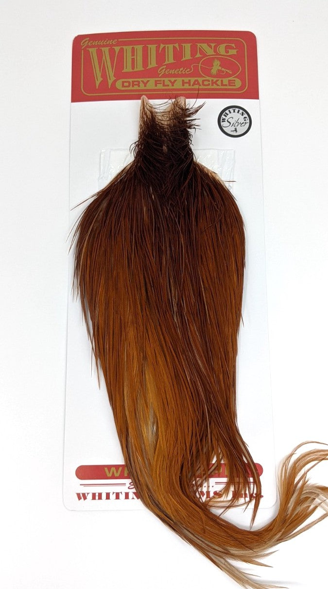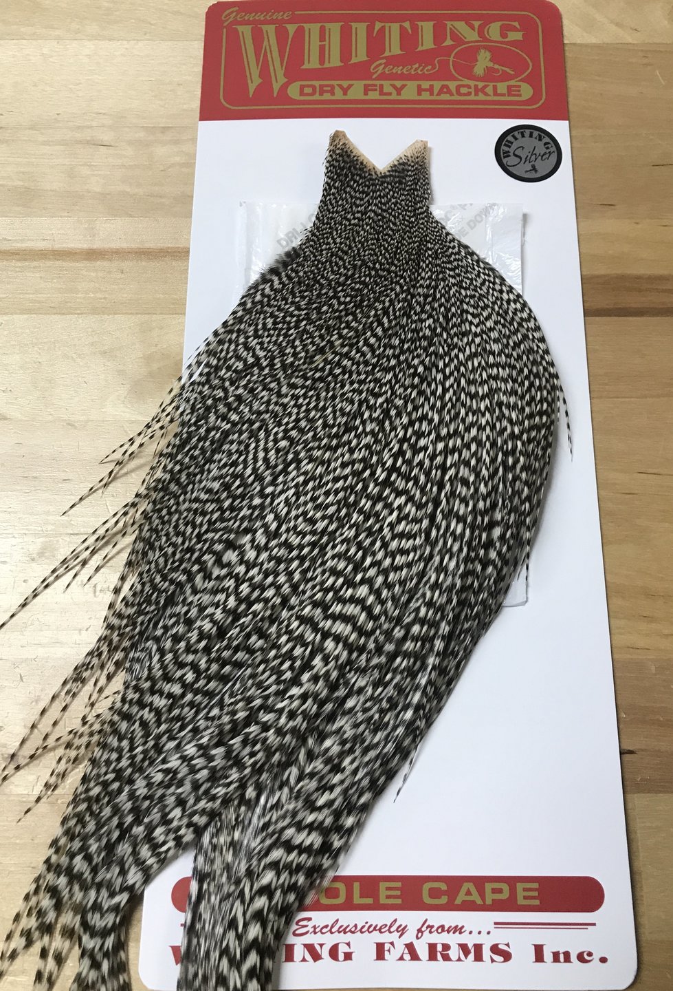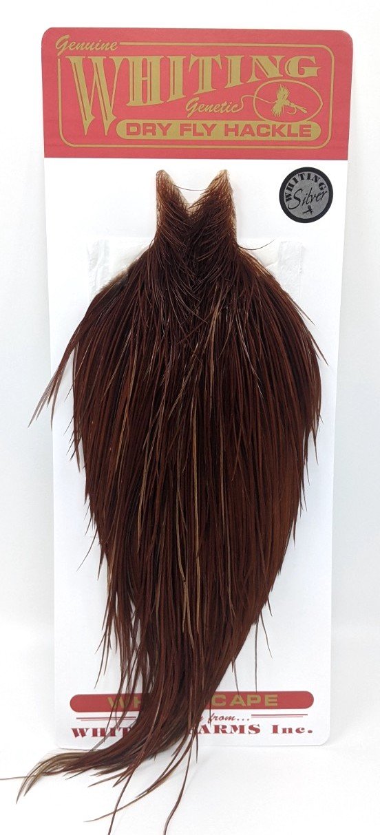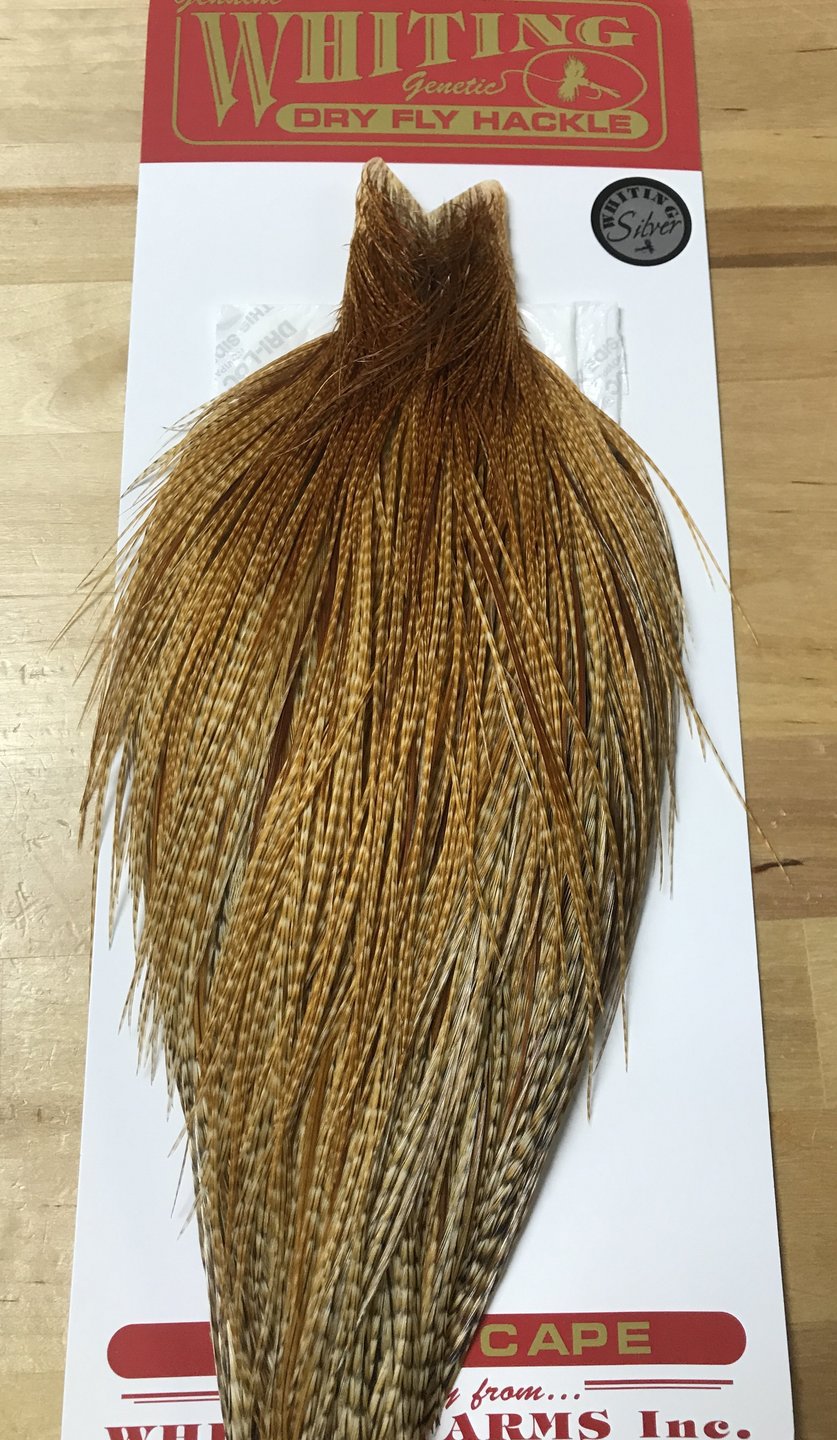 Some of the best dry fly capes out there! These have feathers ranging from roughly size 10-24. The hackles are exceptionally long on the Silver Capes as well, many of them are in the 5-6" range.