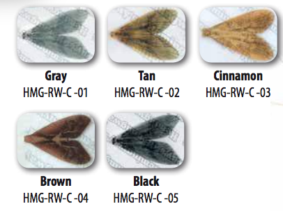 Hemingway Realistic Caddis Wings - Wings available by color and size. Large Wings are perfect for size 12 hooks and have 18 wings per pack. Medium wings work well on size 14 hooks and have 21 wings per pack. Small Caddis wings are suited for size 16 hooks. Small Wing packs have 27 wings per package.
