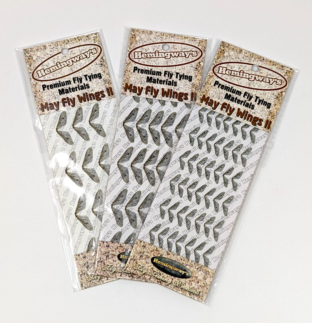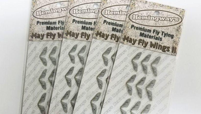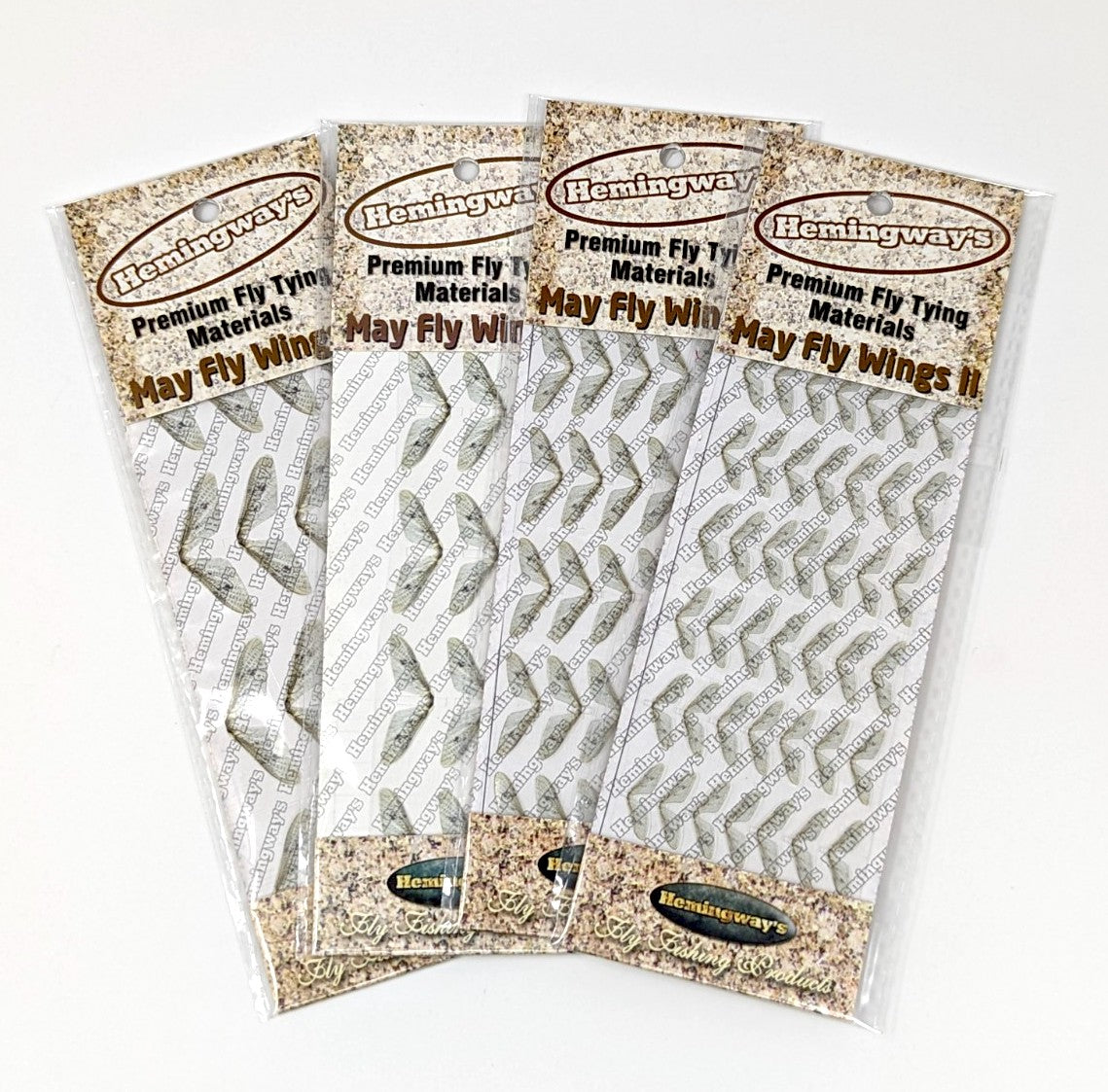 Hemingway's Mayfly Wings II - These realistic mayfly wings are a fantastic addition to make your bugs look real. Simple and easy to use due to their pre-punched wings with tie in tags, and made to fold up to look like a real set of mayfly wings.