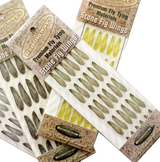 Hemingway's realistic stonefly wings are premium quality, preformed, precut, flexible, durable, transparent, waterproof and UV resistant. Realistic stone fly wings are easy to incorporate into your favorite adult stonefly patterns. Available in sizes: extra small, small, medium and large.