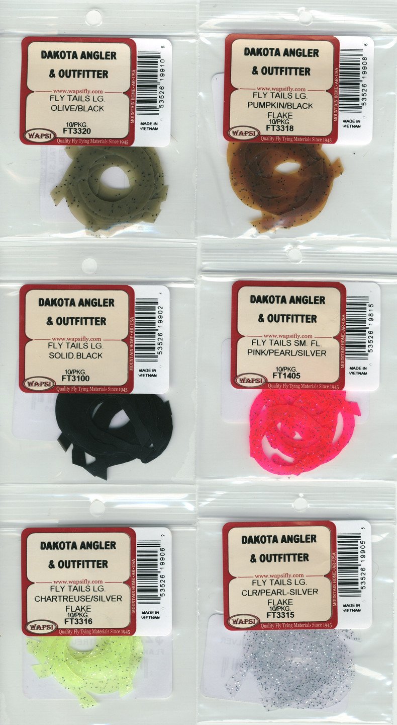 These give any streamer a spinning, undulating action that fish can't resist! Fly Tails are similar to a conventional "Mr. Twister" used on a spinning rod. These come in a variety of sizes and colors to suit all of your tying needs!