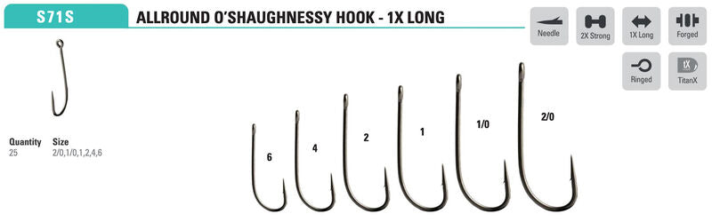 Mustad Allround O'Shaughnessy 34007 2XH1XL Forged Straight TitanX 25 Pack - Size 1 is backordered and will ship as soon as it is back in stock.