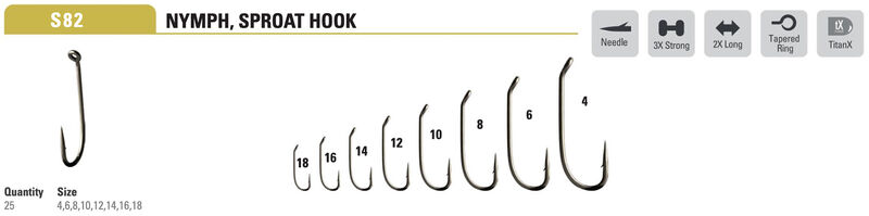 Mustad Nymph Hook 3906B Sproat Bend 3XH 2XL Down Eye TitanX 25 Pack - S82AP