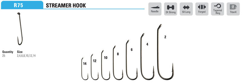 Mustad Streamer Hook 79580 2XH 5XL Forged Down Eye TitanX 25 Pack - Size 10 is backordered and will ship as soon as it is back in stock.