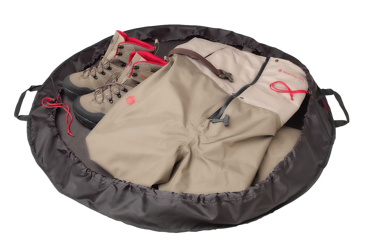 - Drawcord system clinches pad around waders and boots to create a carry bag