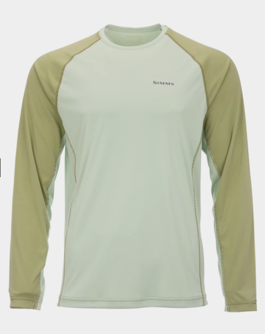 Simms Men's Solarflex Crewneck Brown Trout Rise Logo - Light Green/Sage Heather / XL is backordered and will ship as soon as it is back in stock.