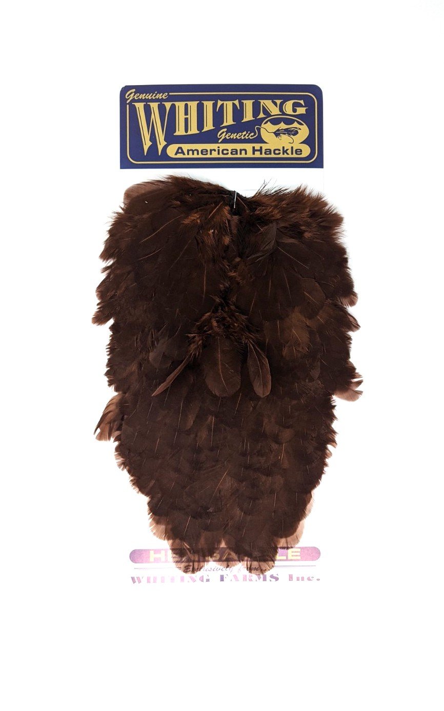 Whiting American Hen Saddles feature large webby feathers that are great for tying streamers, feather game changers, and for collars.