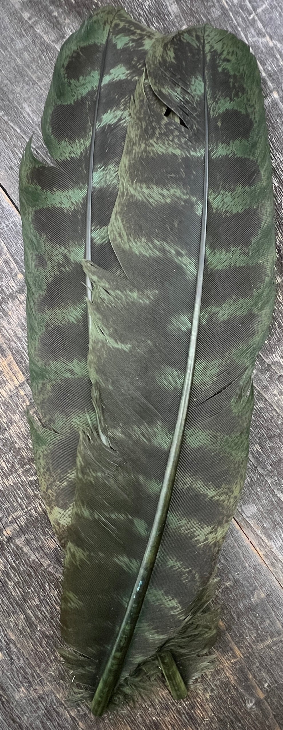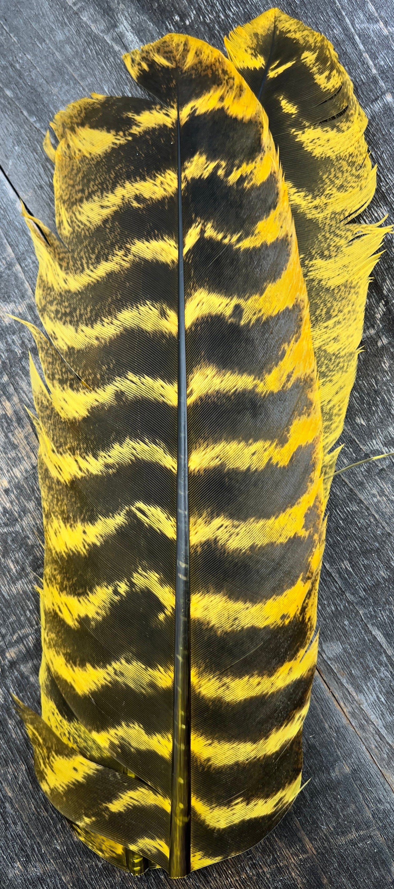 Turkey Secondary Pair #2 - These feathers are ideal for creating muddler wings, hoppers, and nymph cases. One Matched Pair