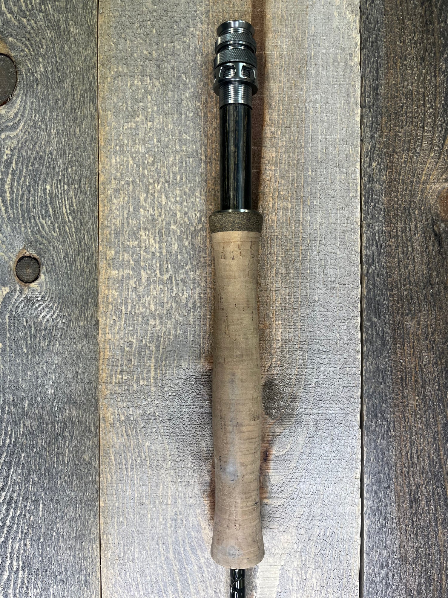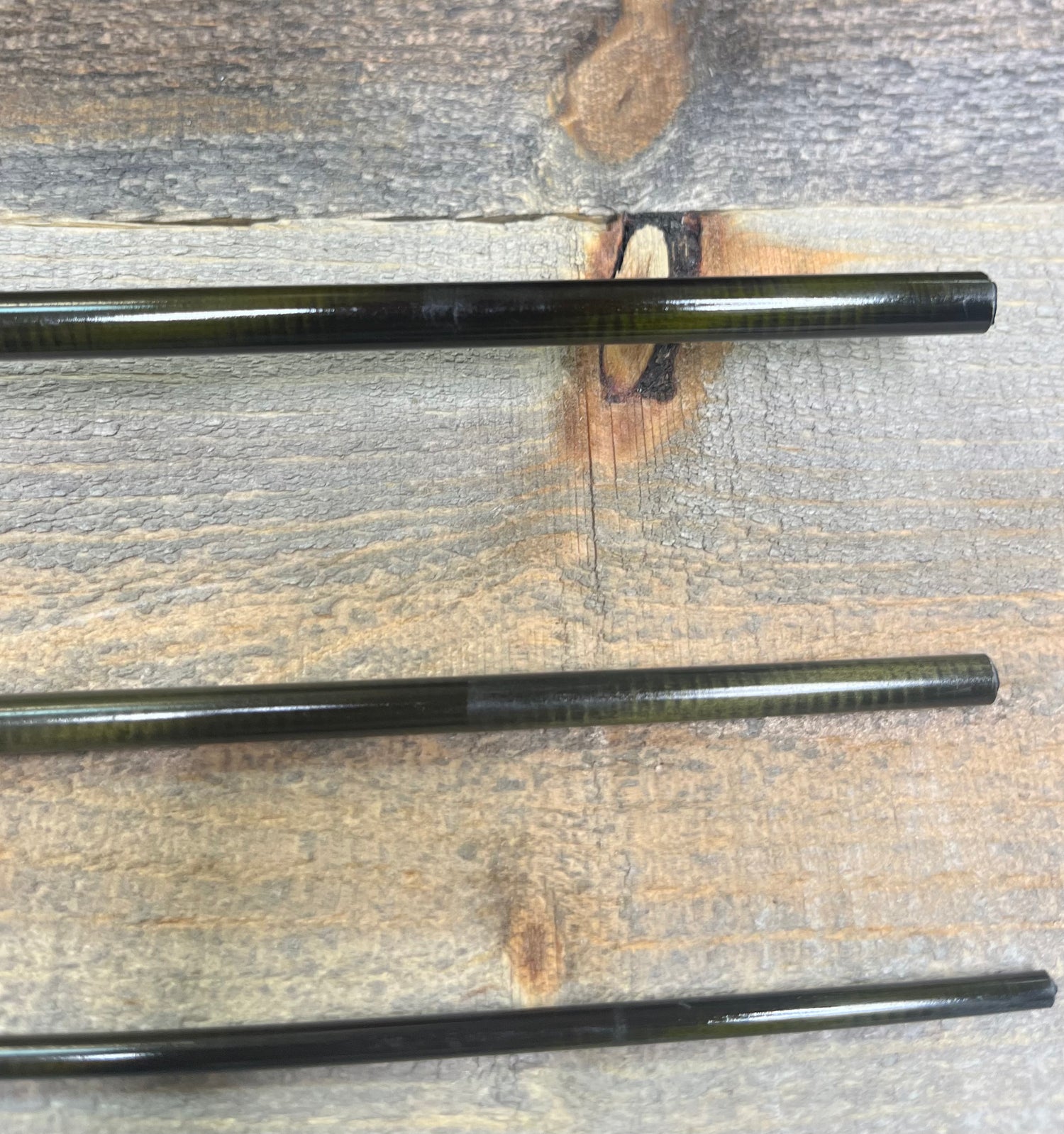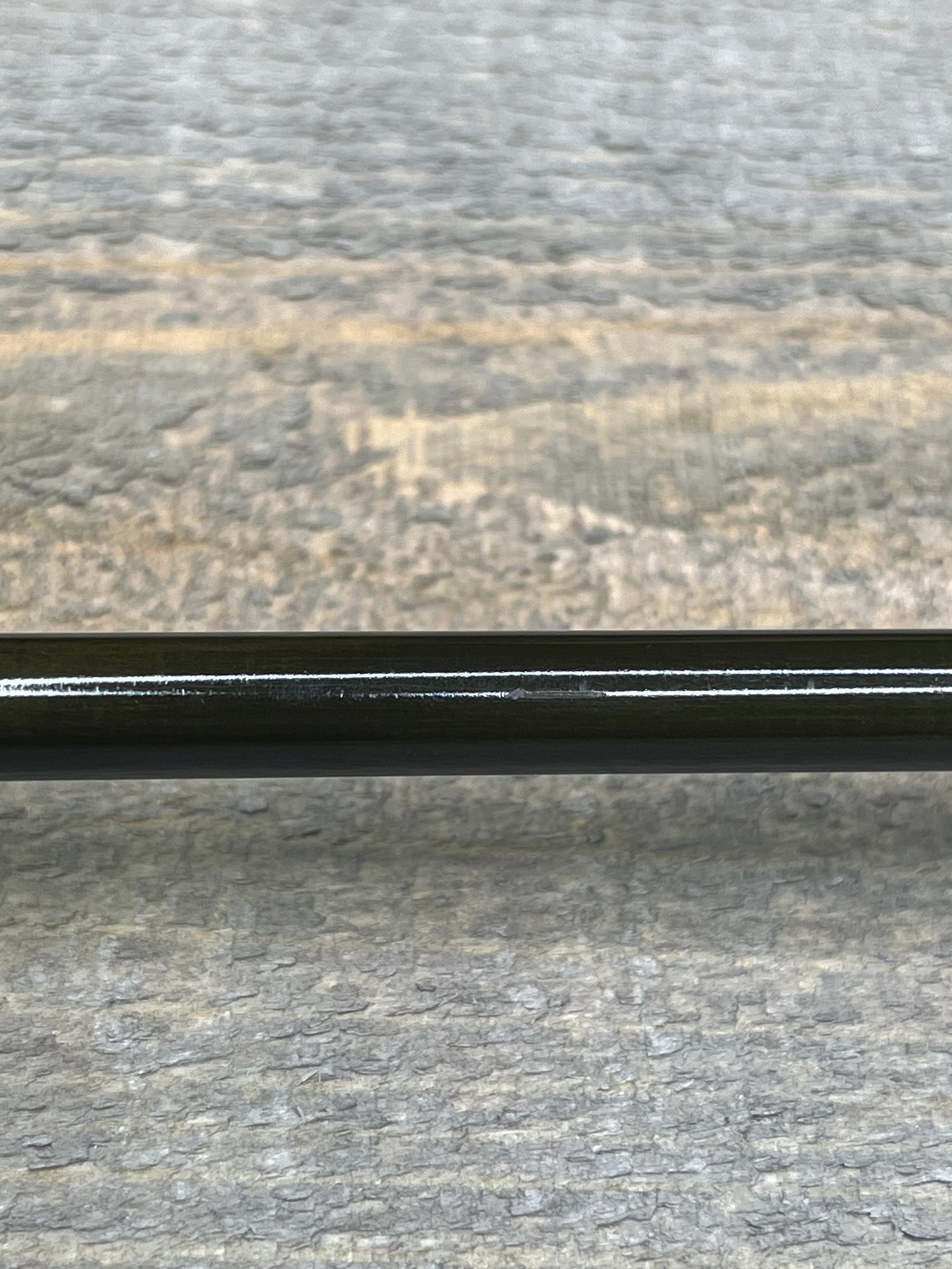 This is a traded-in G-Loomis IMX-PRO rod (4pc, 8'6", 4wt). The rod is in fair condition. The rod tube is scuffed up, and there is no rod sock. The cork is dirty. However, the rod blanks are in good condition. There are a few minor scratches and scuffs, specifically around the connection points of the rod.