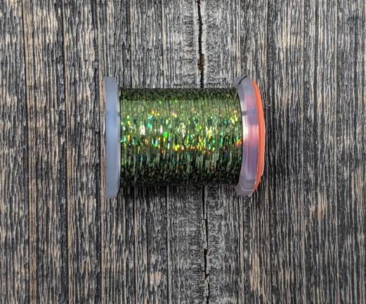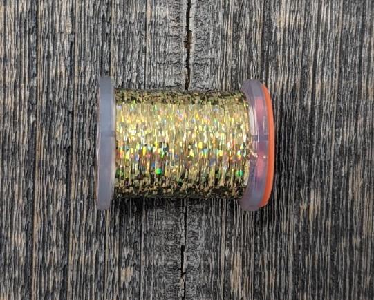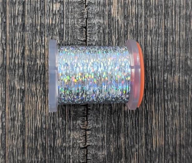 Holographic mylar tinsel. Very flashy. Great for lightning bugs and disco midges. Also used to rib nymph patterns.