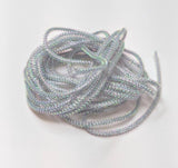 Pearl Core Braid from Hareline Dubbin is a unique material- the core of the material is sheathed in a weave of pearl krystal flash. The nature of this material gives depth to caddis larva patterns and worm patterns.