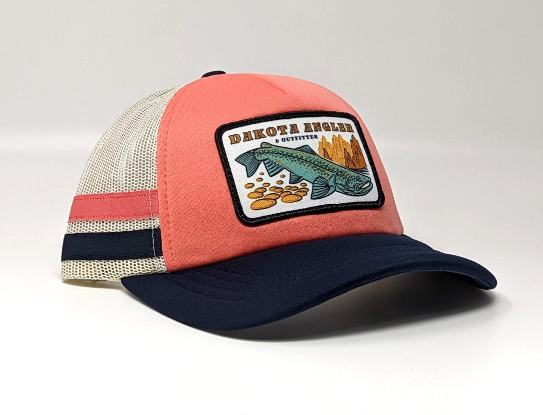 Shop Logo Patch Foam Striped Trucker Cap (c35-FM) Teal/Birch/Navy Hats, Gloves, Socks, Belts