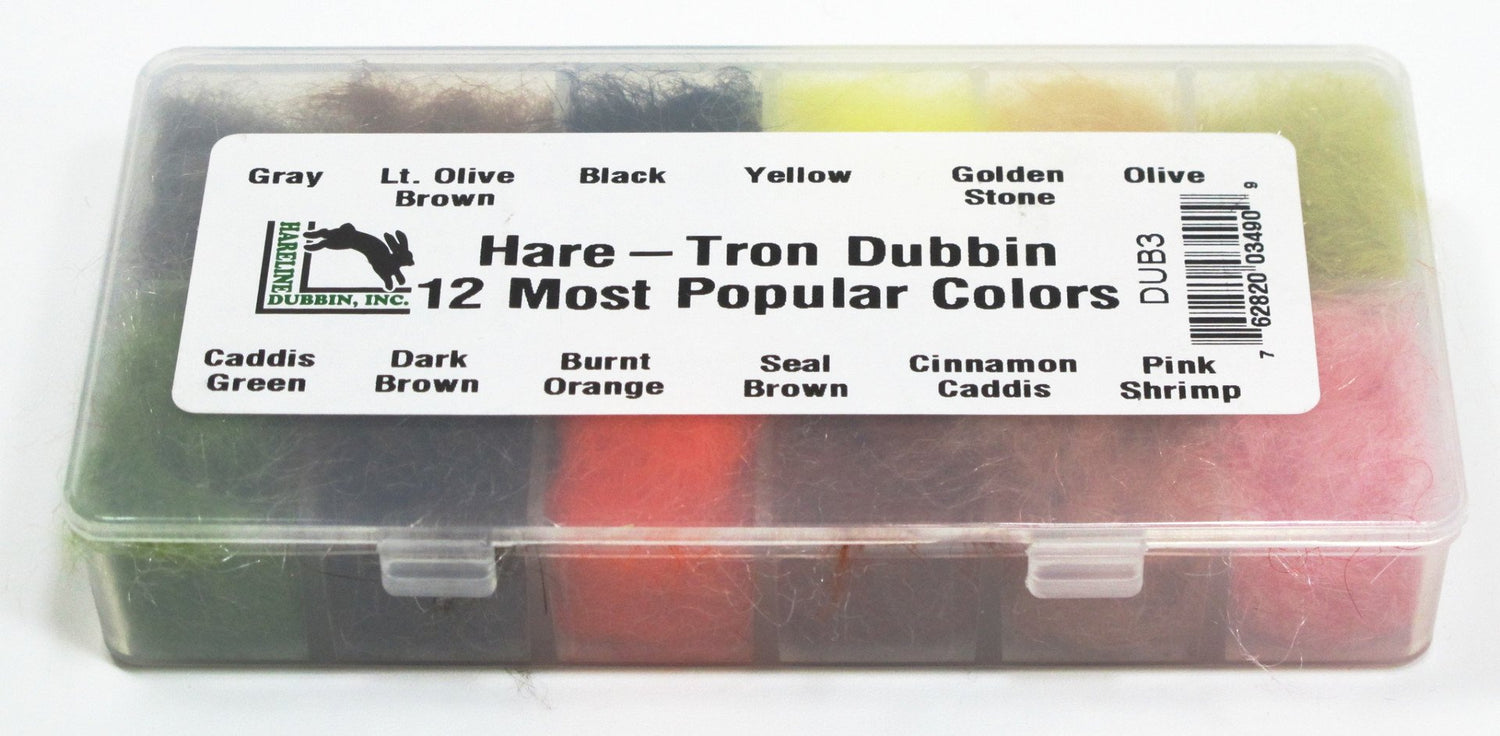 Rabbit hair dubbing with just the right amount of antron. A very popular dubbing for nymphs and emergers. 12 Color dispenser.