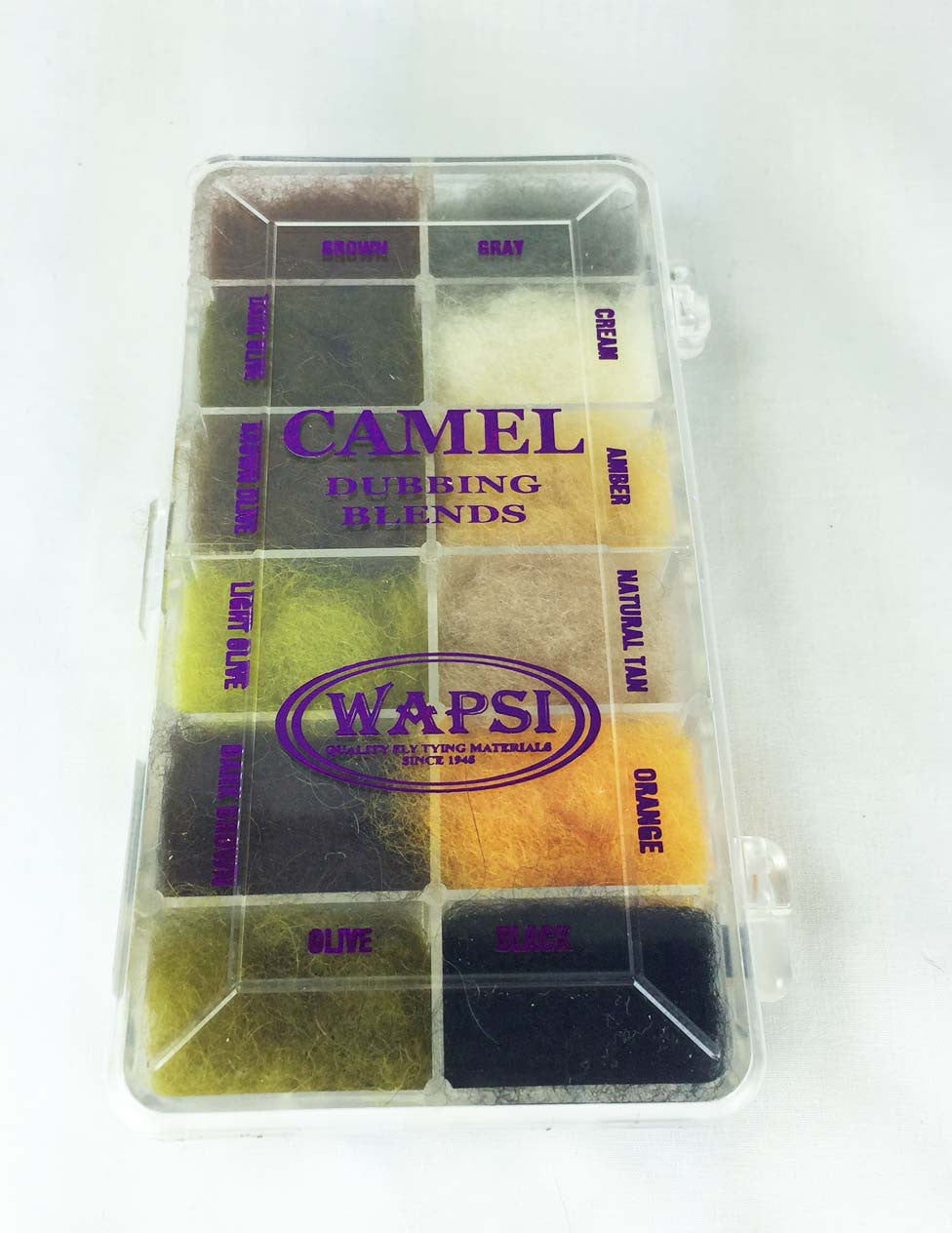 A 12 color selection of Wapsi Camel Dubbing. Colors included
