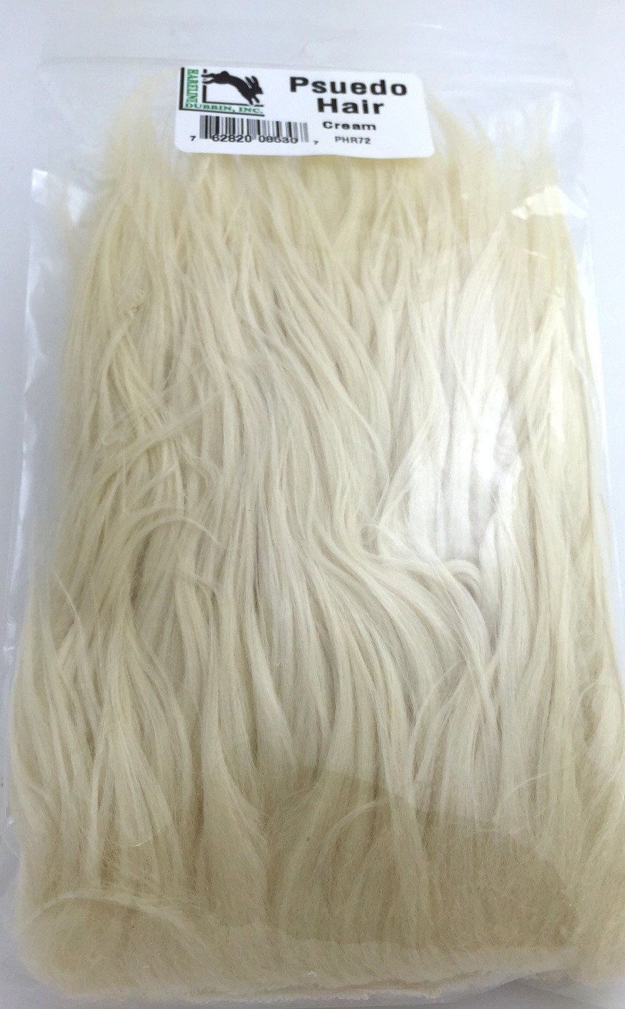 Hareline Dubbin's Pseudo Hair is a great substitute for the hard to find polar fibre. We love this soft fine fibered synthetic fur, its awesome used in place of craft fur. Compared to craft fur, Pseudo Hair is softer, has finer fibers, and has awesome movement. Use for wings on bonefish flies- such as Gotchas. Also use for wings on clouser style flies.