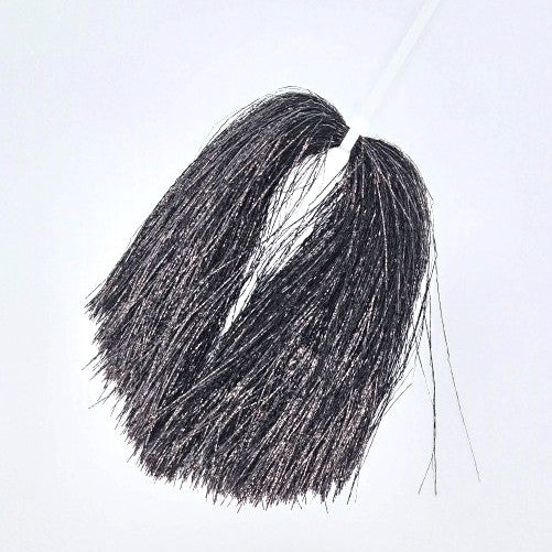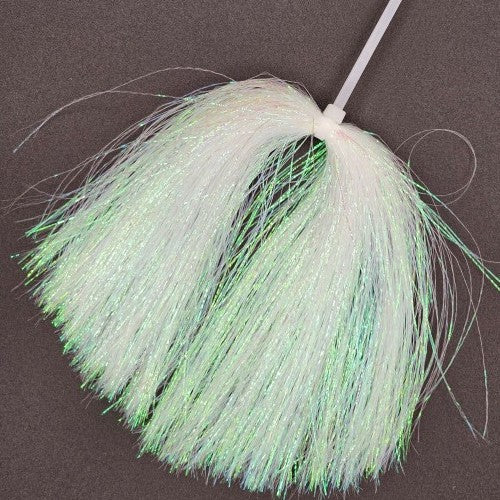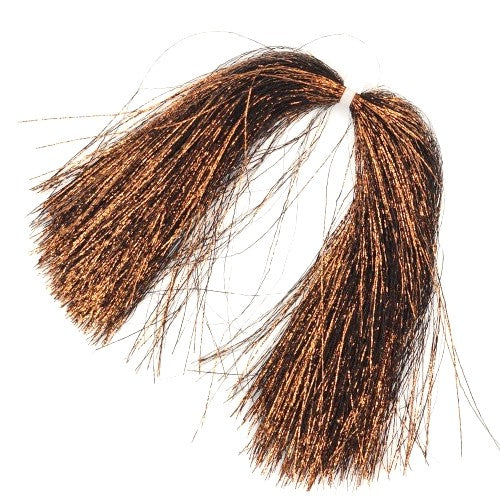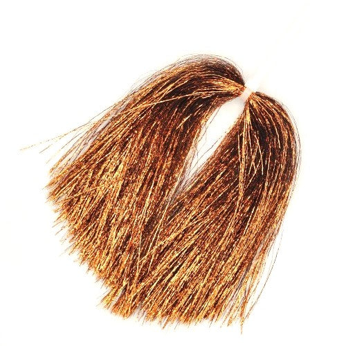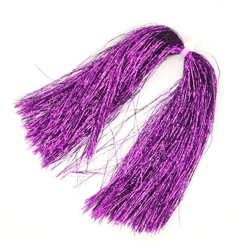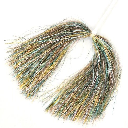 1/69" metallic strands reinforced with nylon for added strength and durability. Super lightweight, hydrophobic strands with irresistible shimmer. 1000 strands x 10-inch length. Swims like a fish.