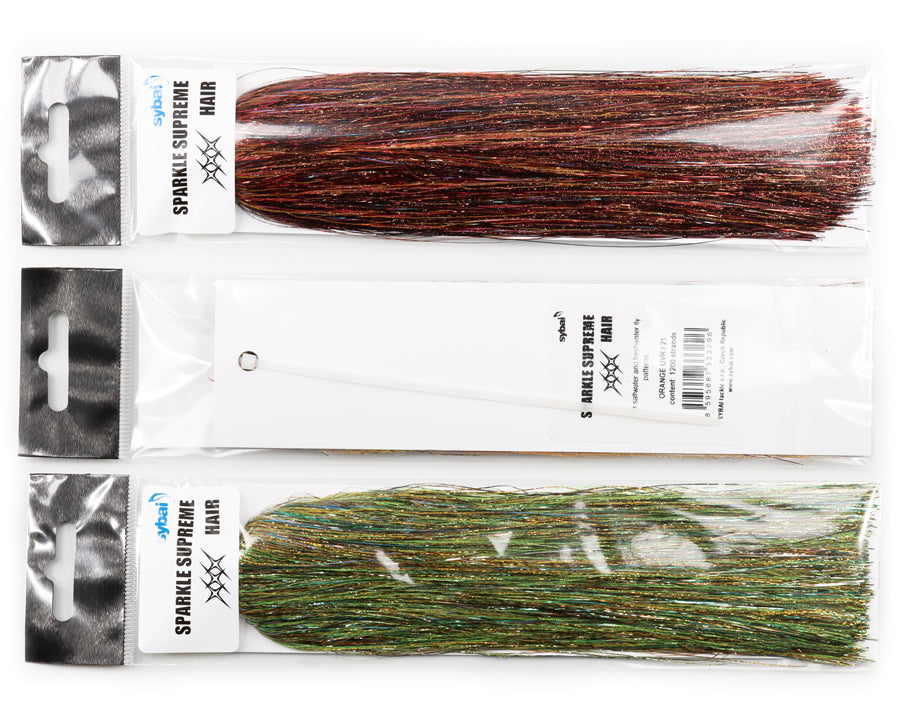Sybai Sparkle Supreme Hair - A new, subtle variation, the shimmery hair is a mix of twisted and flat canvas hair. There are metallic, pearlescent, and, in some variations, holographic, and fluorescent fibers. It is very soft and movable with a pulsating effect. It is excellent glitter material for wings, tails, and bodies.