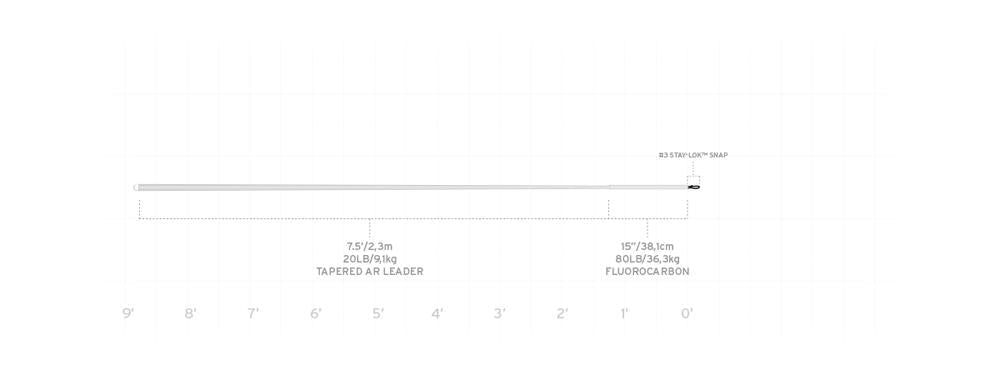 - 8’ tapered leader aids in smooth turnover of larger flies