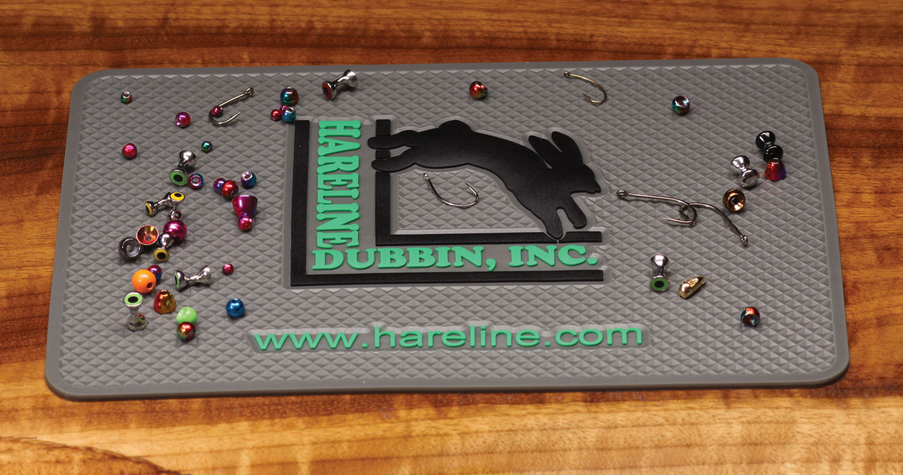 Hareline Silicone Bead Pad - Will keep your hooks and beads from rolling or sliding away. The reverse side can be used for adhesives or epoxy and will not stick making it easy to clean. 7.5" x 5"