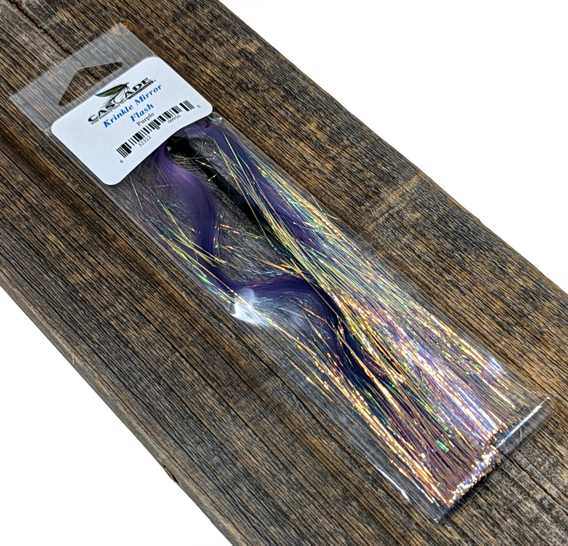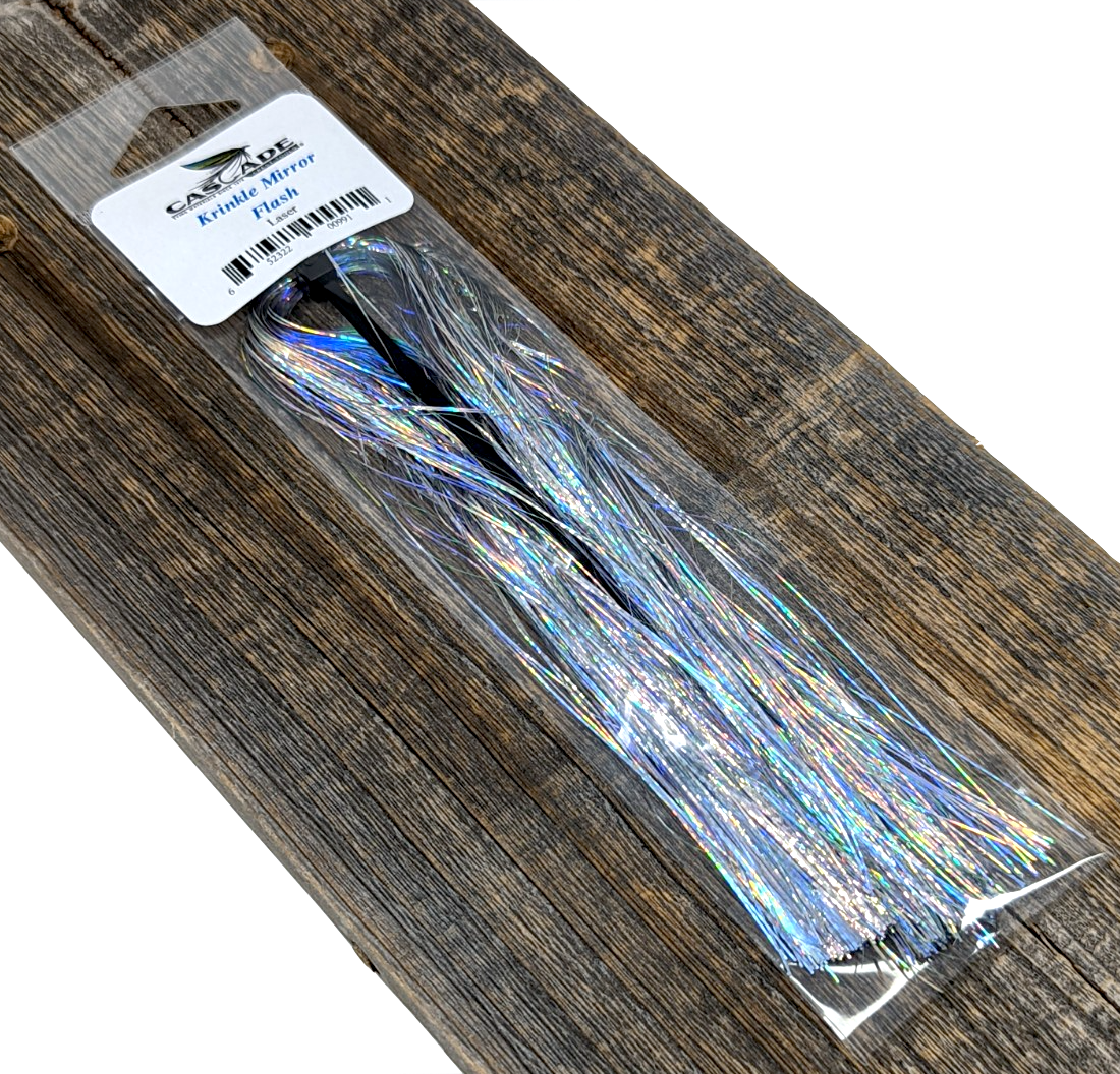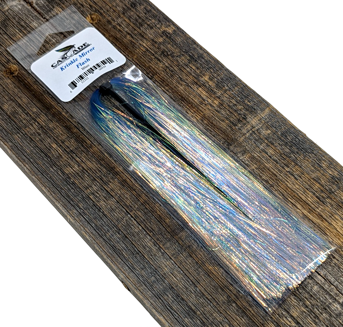 A unique mylar flash that is crimped resulting in many more point of refraction. Krinkle Mirror flash adds more flash with fewer fibers. Great addition to woolly bugger tails. Also great on baitfish flies, closer minnows, and any warmwater pattern. Krinkle mirror flash looks great when used on steelhead and salmon flies.