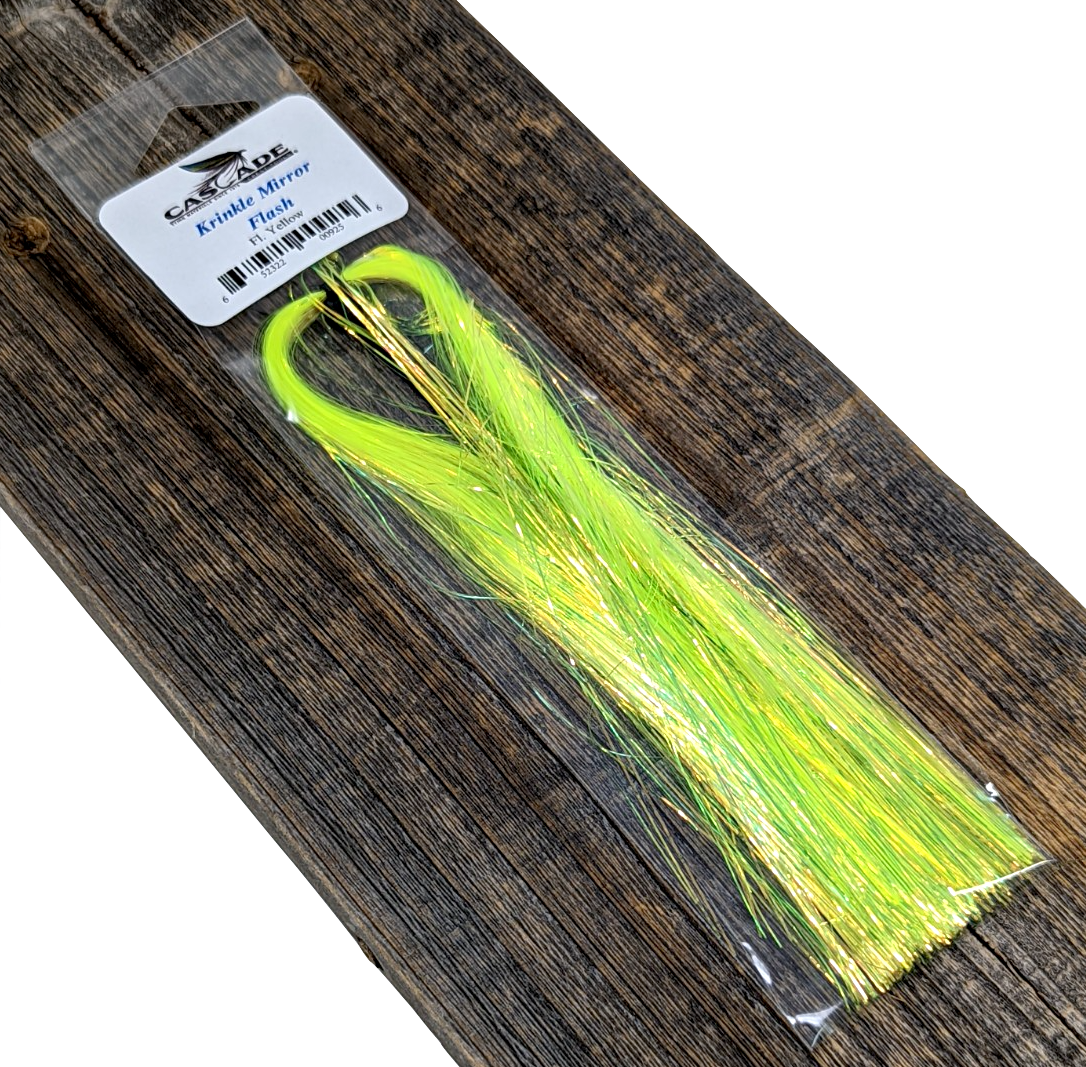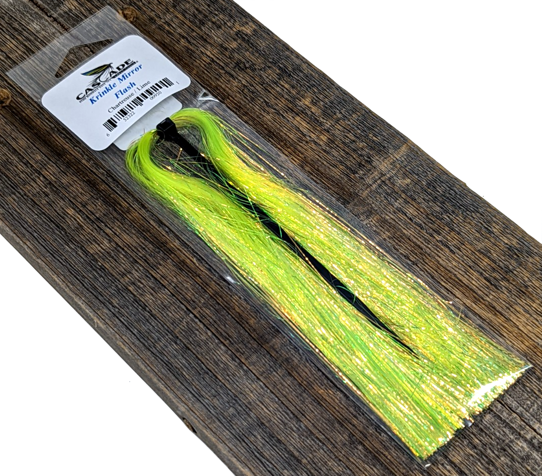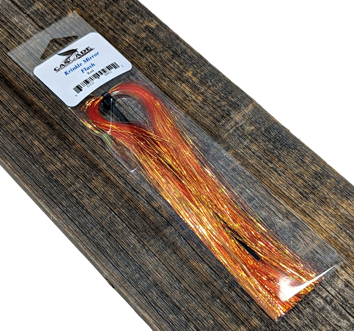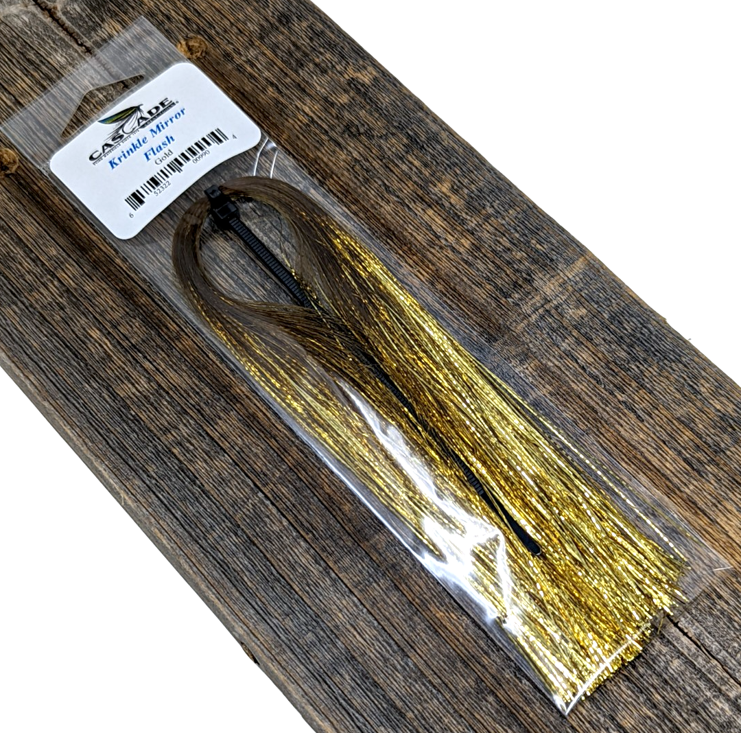 A unique mylar flash that is crimped resulting in many more point of refraction. Krinkle Mirror flash adds more flash with fewer fibers. Great addition to woolly bugger tails. Also great on baitfish flies, closer minnows, and any warmwater pattern. Krinkle mirror flash looks great when used on steelhead and salmon flies.