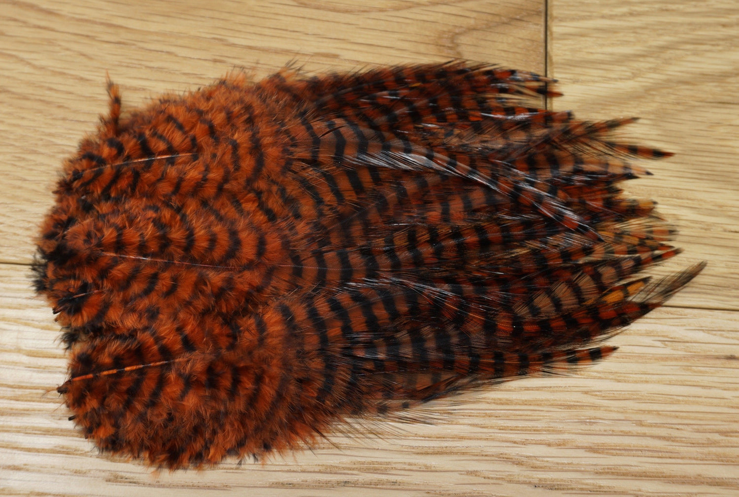 MFC Barred Saddle Hackle - Burnt Orange/Black is backordered and will ship as soon as it is back in stock.