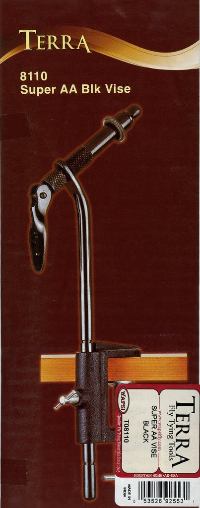 The AA Vise is our best selling vise and the one we use in many fly tying kits. It is available in either black or stainless steel. The hardened steel jaws and easy to use cam adjustment firmly holds hooks ranging in size from 2/0 to 20.