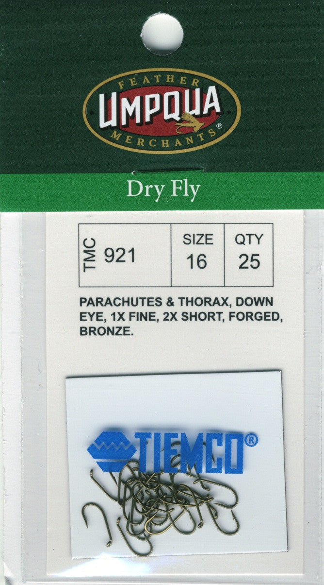 The Tiemco 921 hook is a short shank dry fly hook, increasing your hook gap while still keeping a small profile for the fly. Down eye, 1X Fine 2X Short. This is also the hook that Charlie Craven uses on the Two Bit Hooker, which is a local favorite.