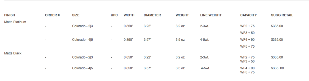 This thoroughly updated design brings a beautiful aesthetic defined by aerodynamic shapes and surfaces. The look of this reel is different from anything on the market today. A novel, all-metal external clicker accentuates the back of the reel, complete with a machined silhouette of our local San Juan Mountains and a classic click-pawl sound. The spool is even more open than its predecessor, making the face of the reel appear spacious and clean, with the beveled large arbor showing off the backing and line just as well as it picks it up. The semi-caged frame adds unmatched strength and rigidity, but with only a minimal weight gain - just enough to balance out a wider range of lightweight rods. The industry-first bushing is fully machined from Vesconite - a material specifically designed to be used in the toughest marine bearing applications, guaranteeing a lifetime of flawless operation. Classic sound and feel meets modern strength and design to make the Colorado a functional piece of art - both on and off the water. With every angle and material carefully analyzed and considered, the new Colorado is designed to be fished from small streams to big rivers and everything in between.
