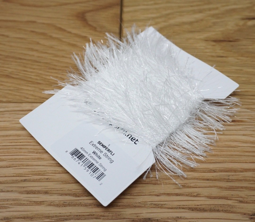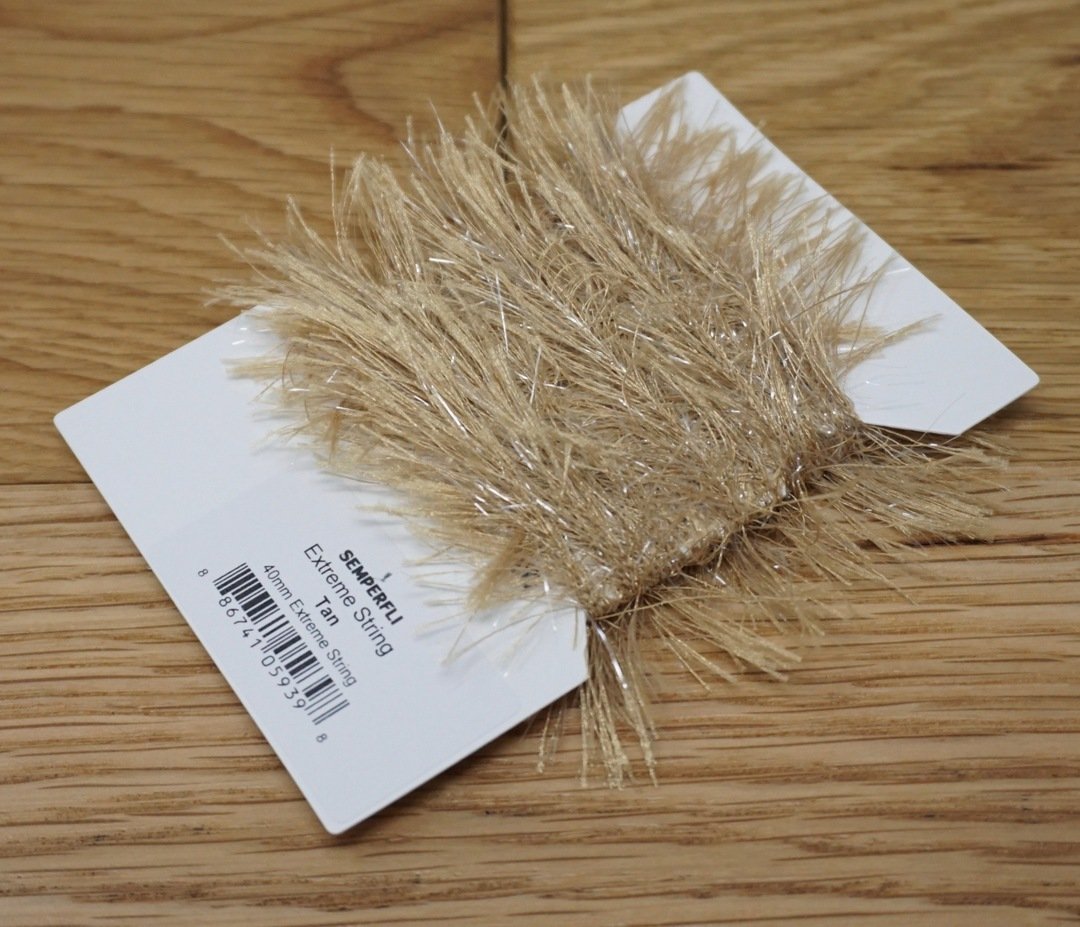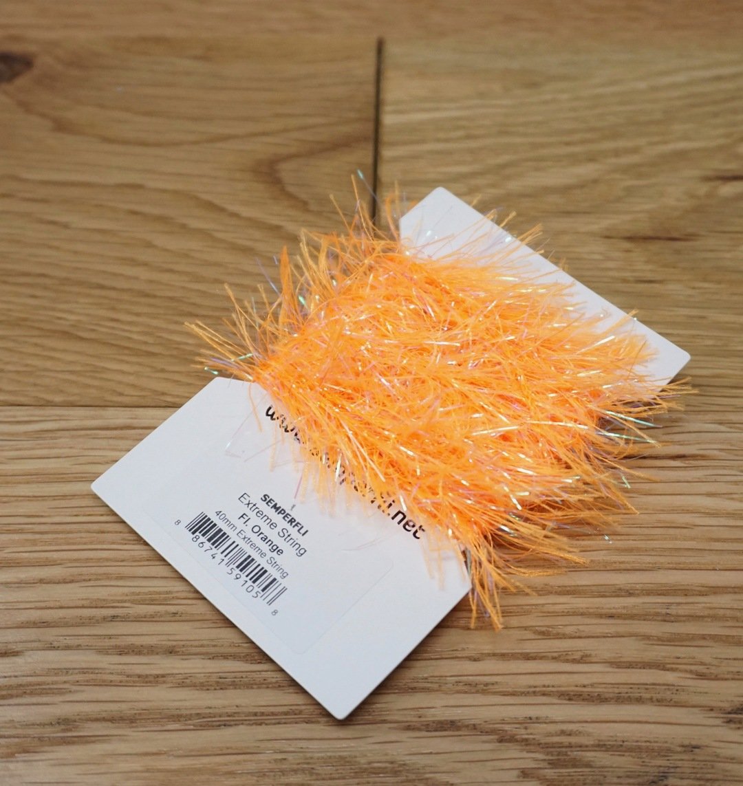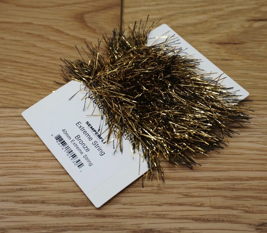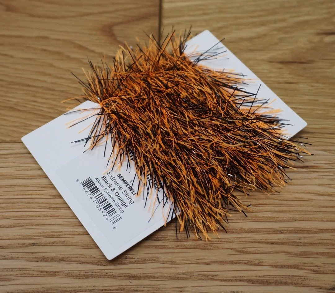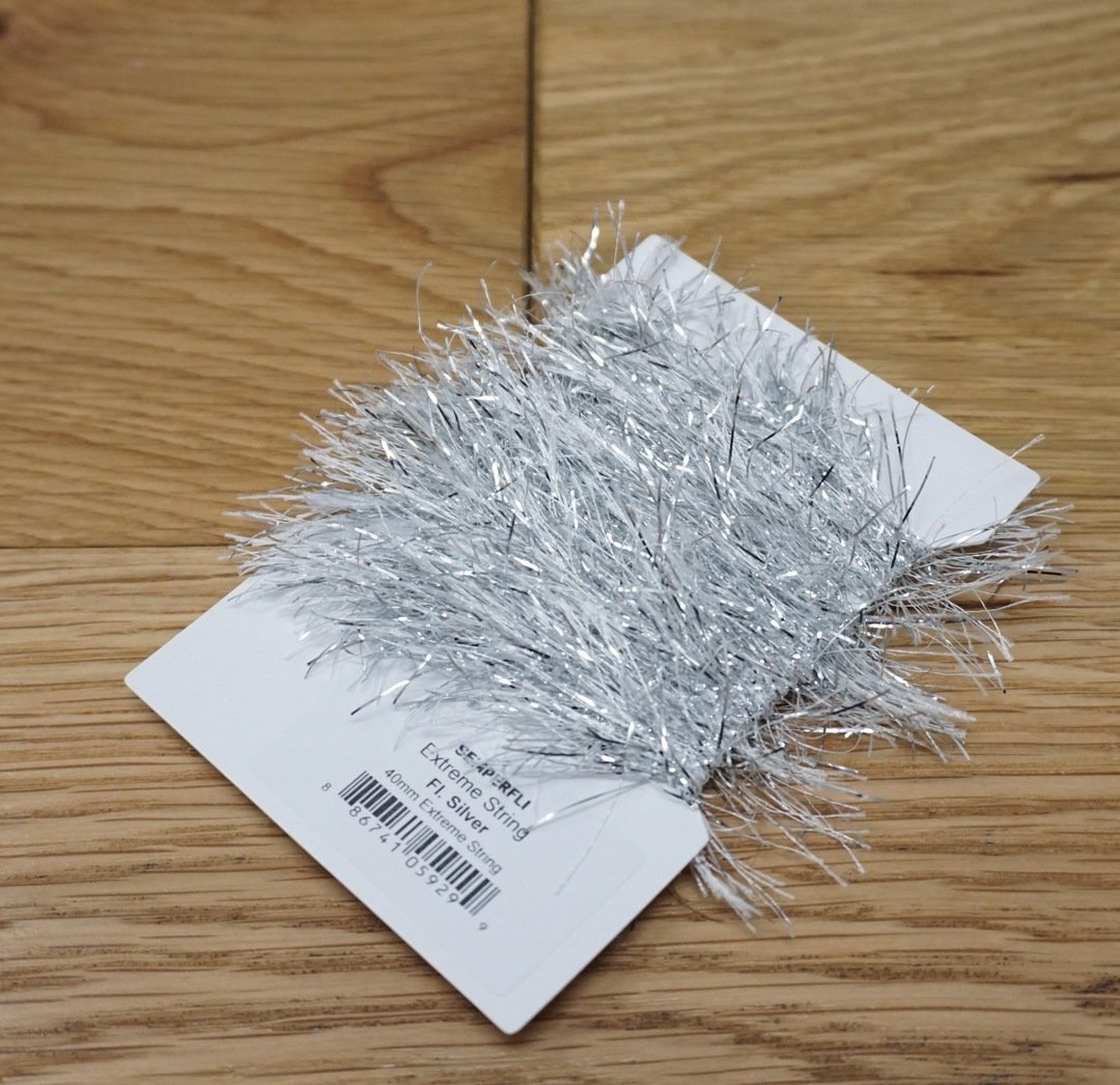 Semperfli Extreme String 40mm - Synthetic hackles with added metallic flash. Simply wrap on the hook and brush out to create bodies and collars on streamers, steelhead flies, pike and musky patterns, and saltwater flies. Perfect for crafting flies to lure in hungry predators!