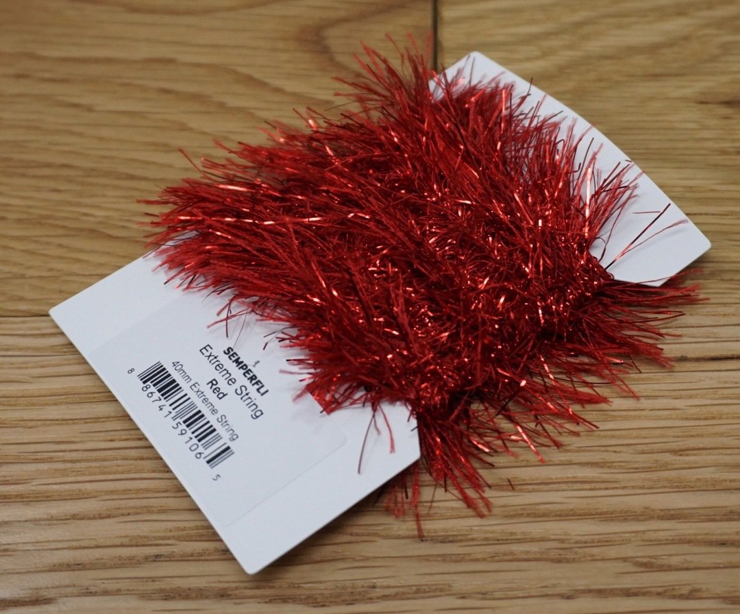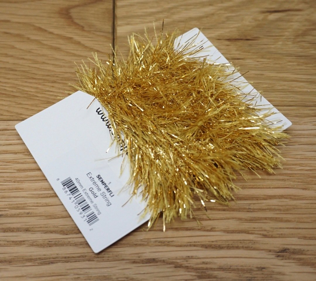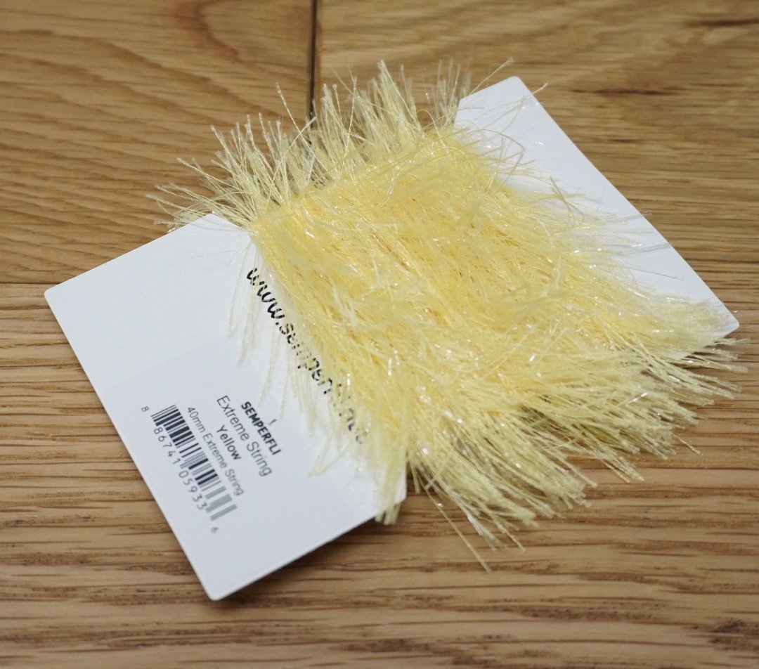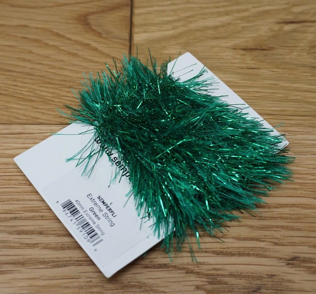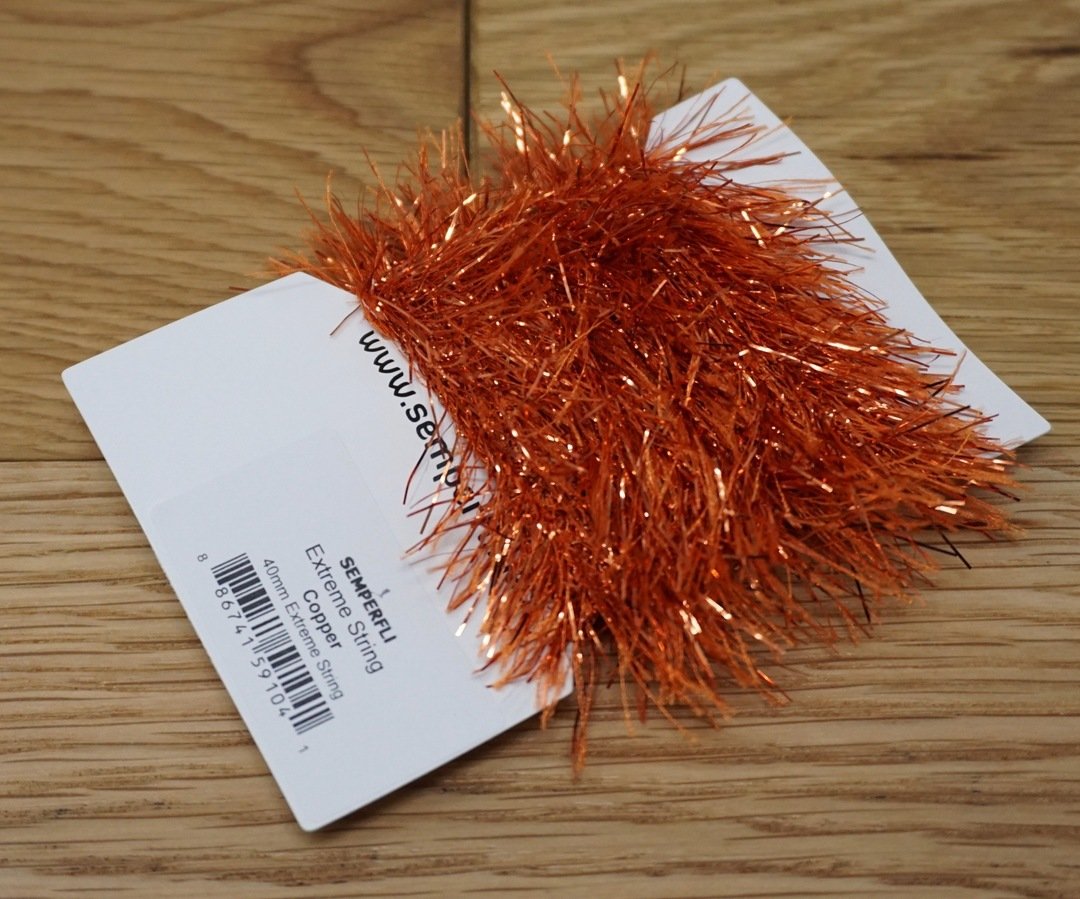 Semperfli Extreme String 40mm - Synthetic hackles with added metallic flash. Simply wrap on the hook and brush out to create bodies and collars on streamers, steelhead flies, pike and musky patterns, and saltwater flies. Perfect for crafting flies to lure in hungry predators!