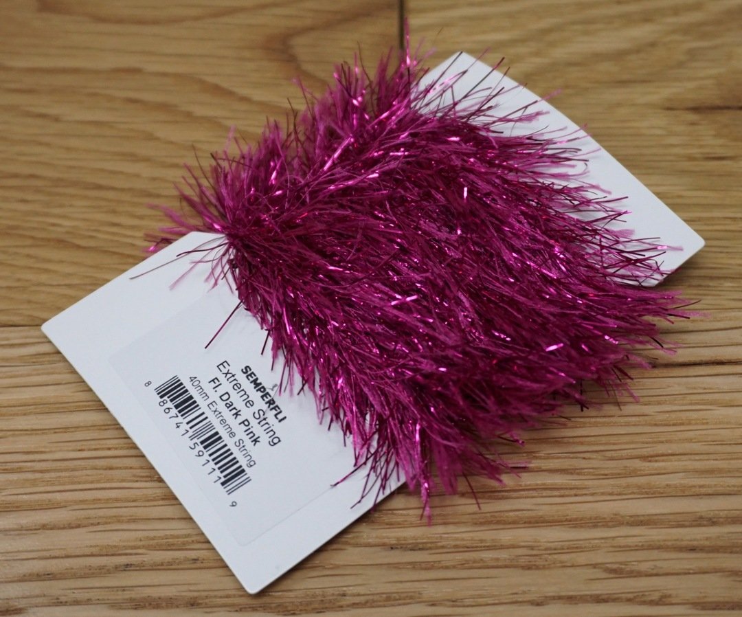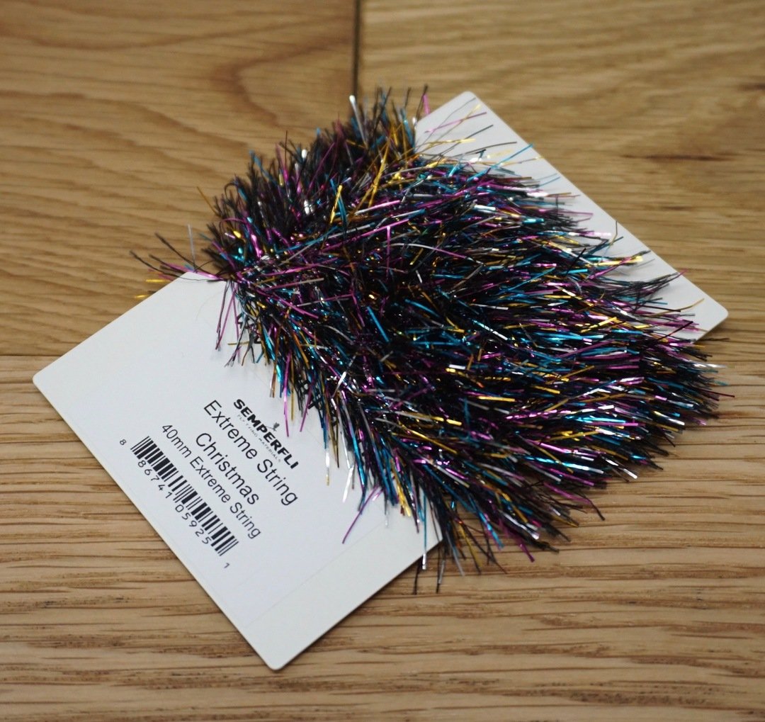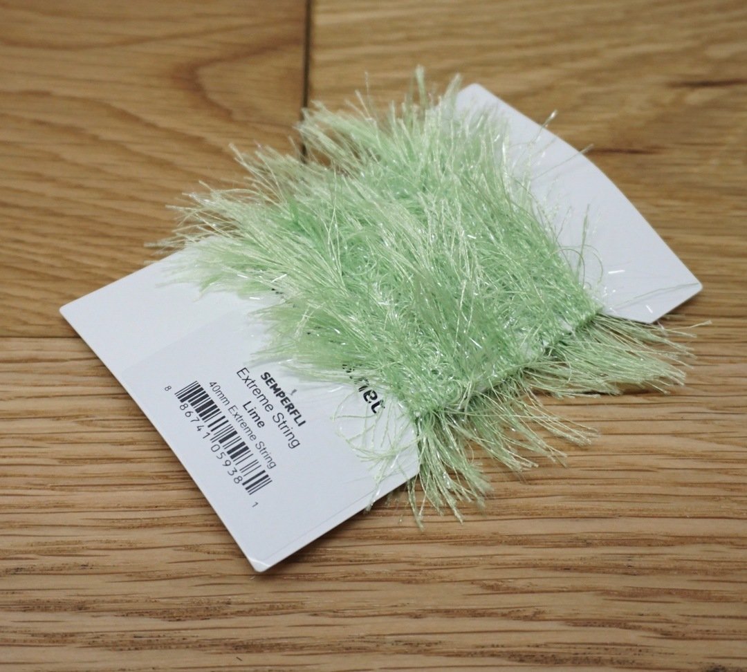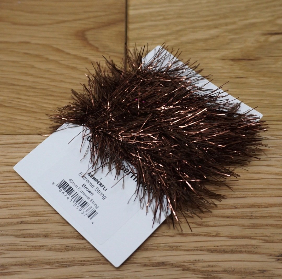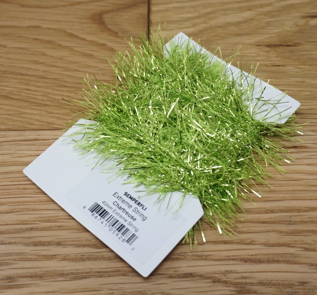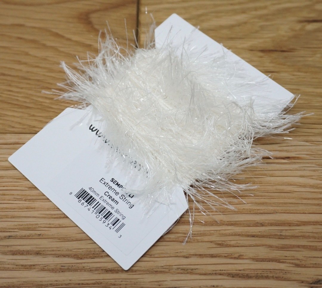 Semperfli Extreme String 40mm - Synthetic hackles with added metallic flash. Simply wrap on the hook and brush out to create bodies and collars on streamers, steelhead flies, pike and musky patterns, and saltwater flies. Perfect for crafting flies to lure in hungry predators!