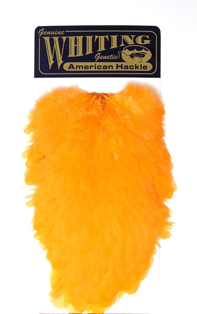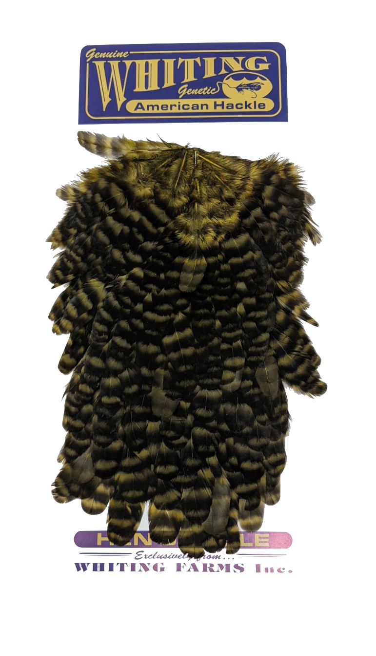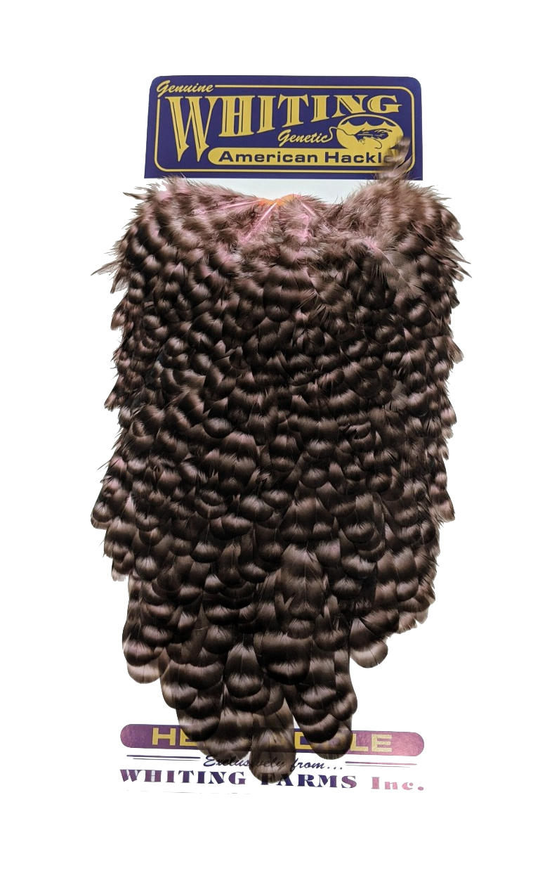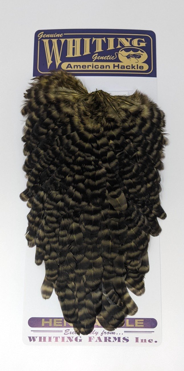 Whiting American Hen Saddles feature large webby feathers that are great for tying streamers, feather game changers, and for collars.