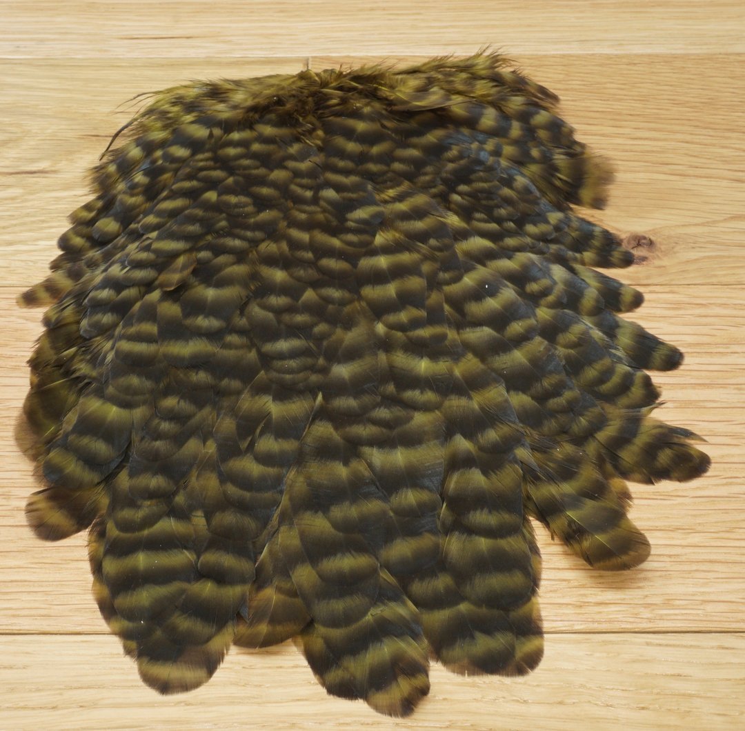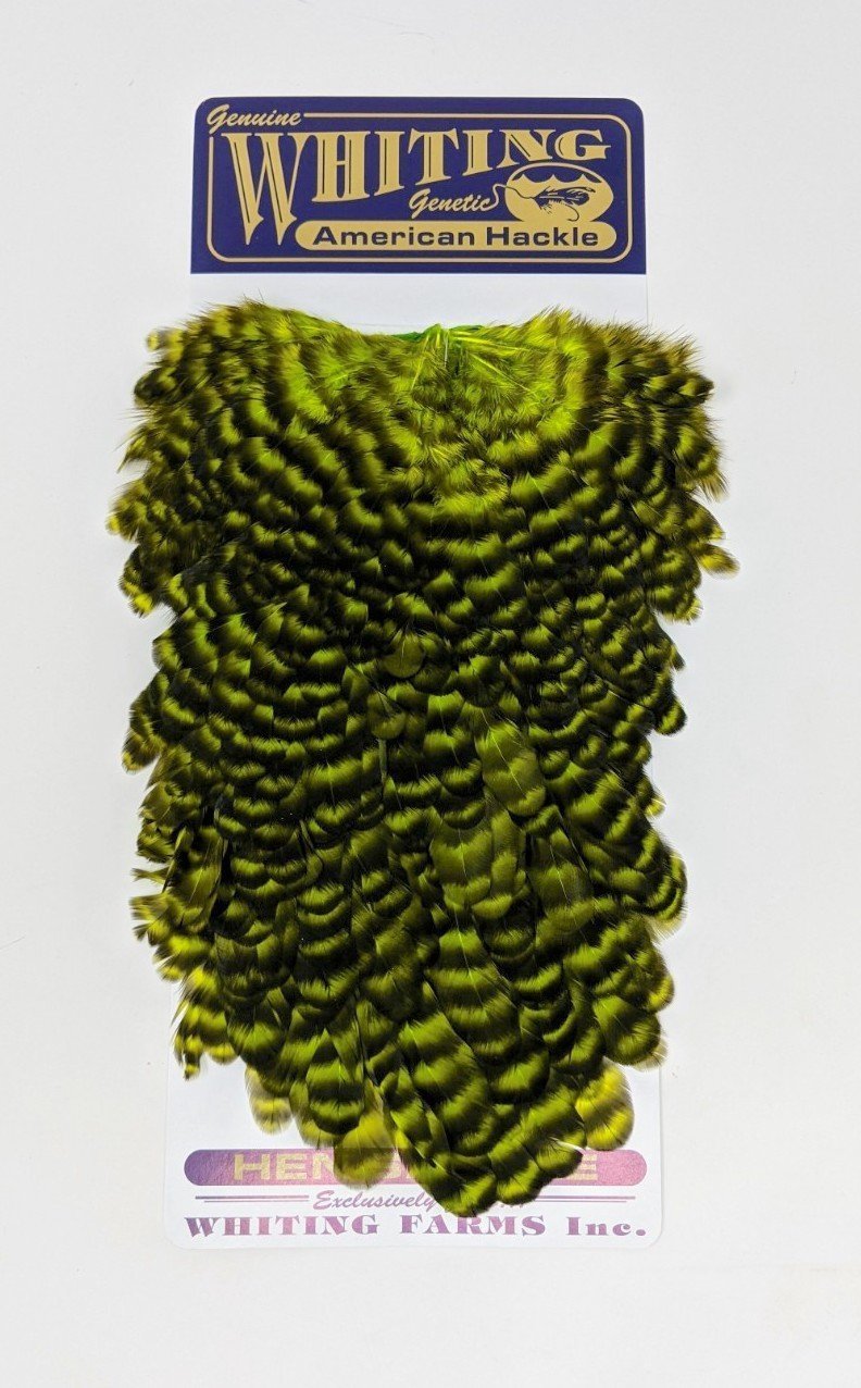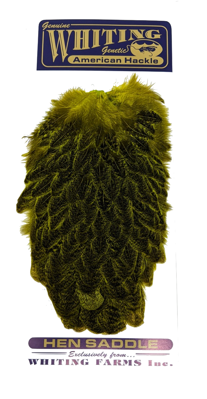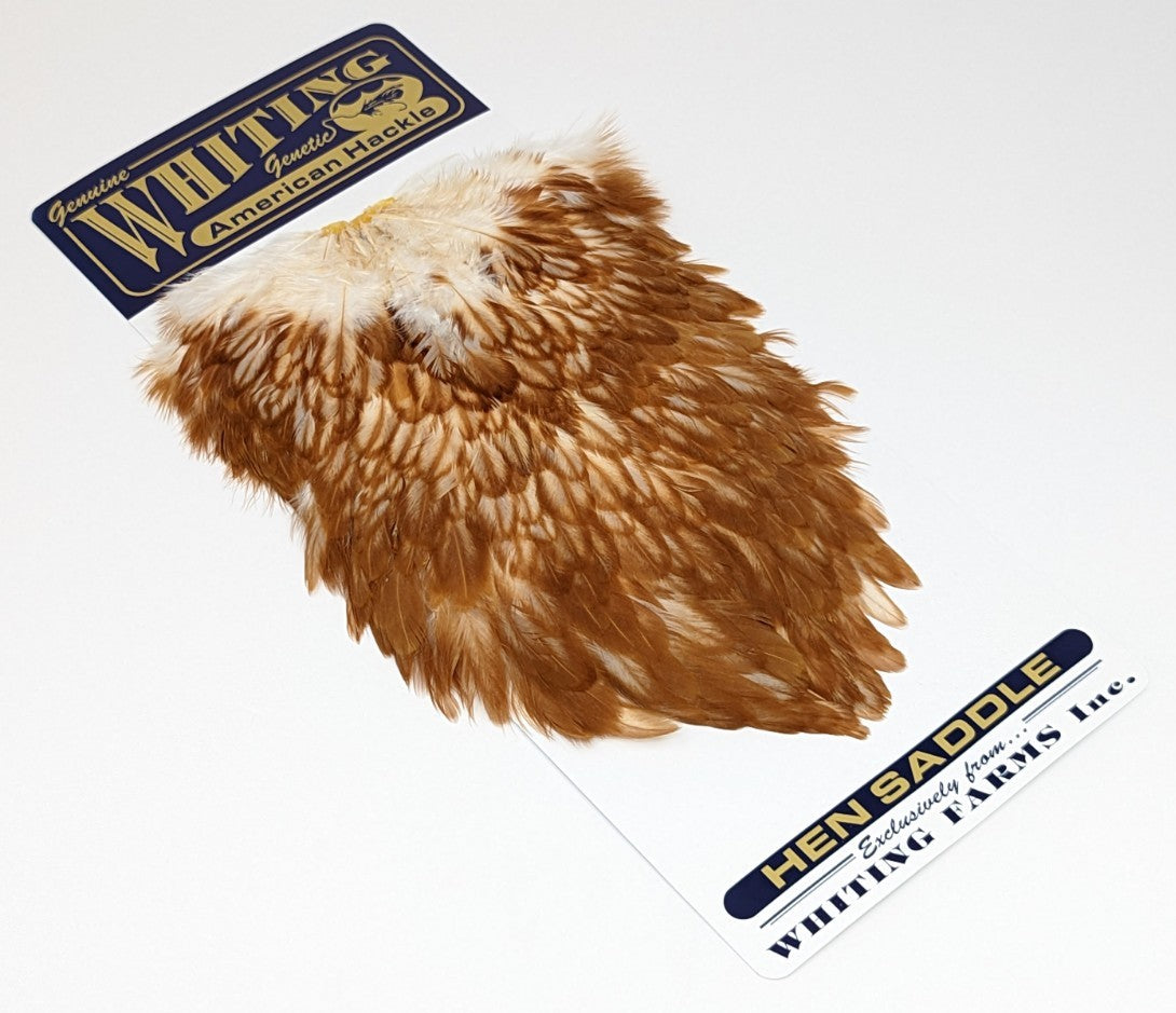 Whiting American Hen Saddles feature large webby feathers that are great for tying streamers, feather game changers, and for collars.